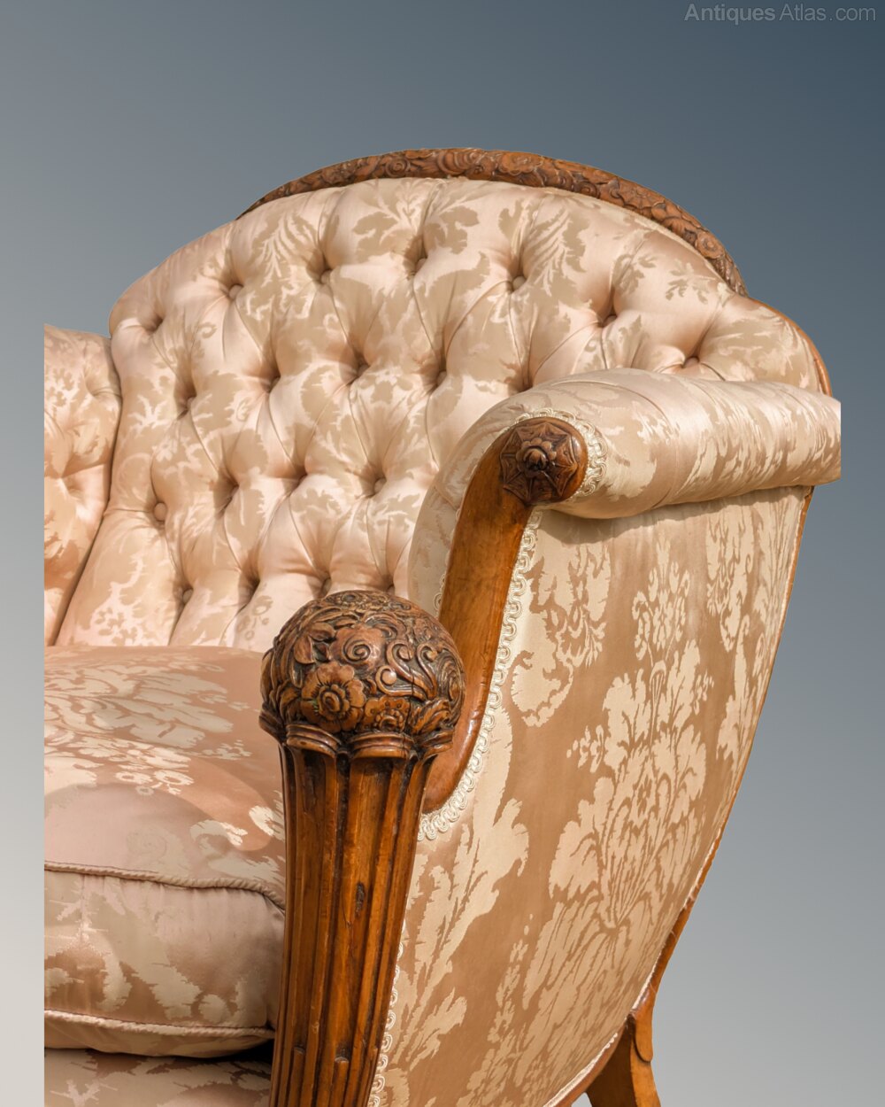 Superb French Walnut Armchair Silk Upholstered