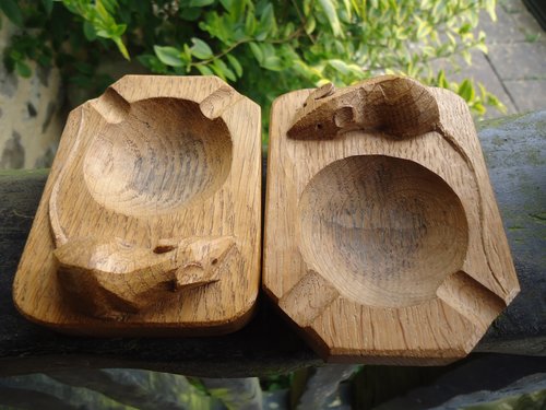 Pair of vintage Mouseman pin trays or ashtrays