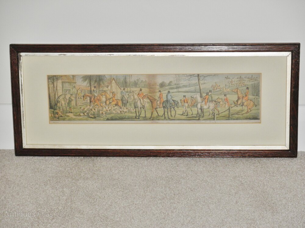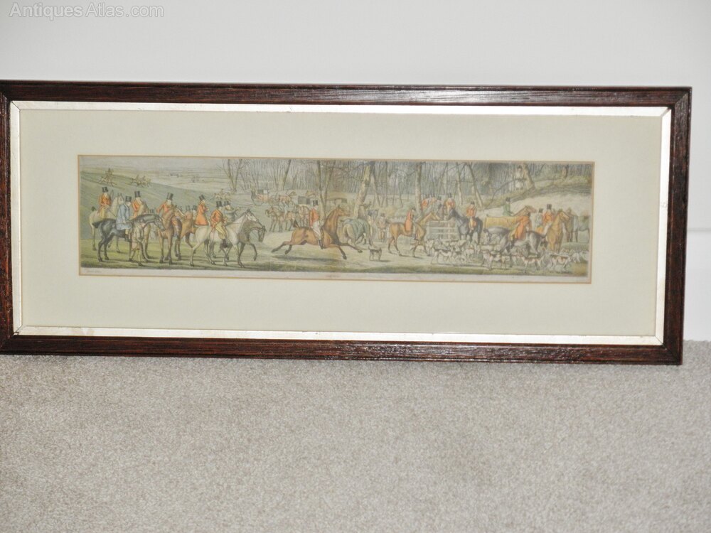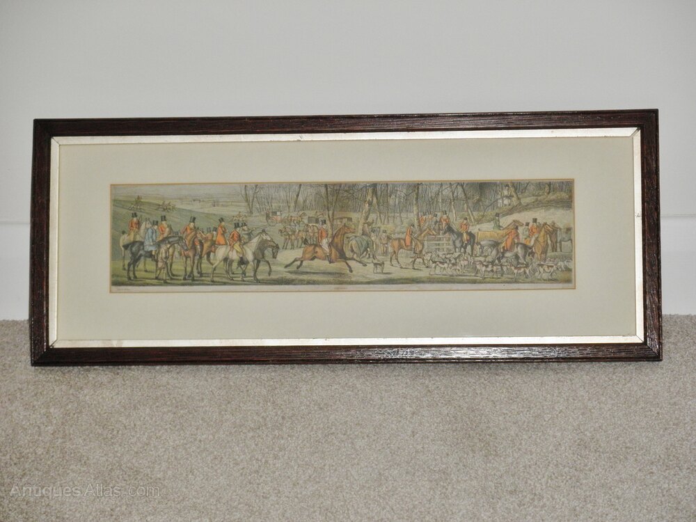 Pair of Victorian oak framed, coloured, hunting prints of paintings by Henry Thomas Alken (1785-1851) a prolific sporting artist and engraver of the early 19thc., who exhibited at the RA. Alken originally began by signing his work as “Ben Tallyho”, before coming to prominence and later continued to produce humorous sporting subjects.