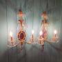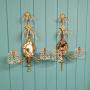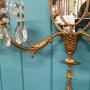 Nice pair of cut glass crystal Wall sconces. These all lights have a shaped pattern mirror back in the classic Edwardian style. The top section is decorated with sets of small beads, hanging from a Prince of Wales thistle. This piece has Scroll arms decorated with leaves, Glass candle bowls, with cut glass crystal drips. They have small screw bulb holders.Date1930s :