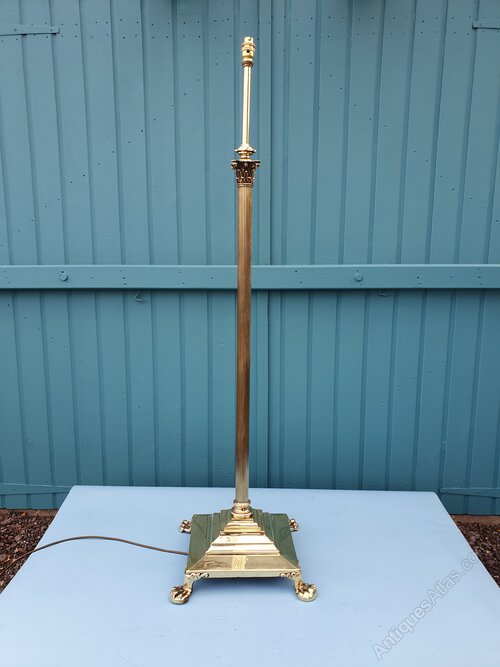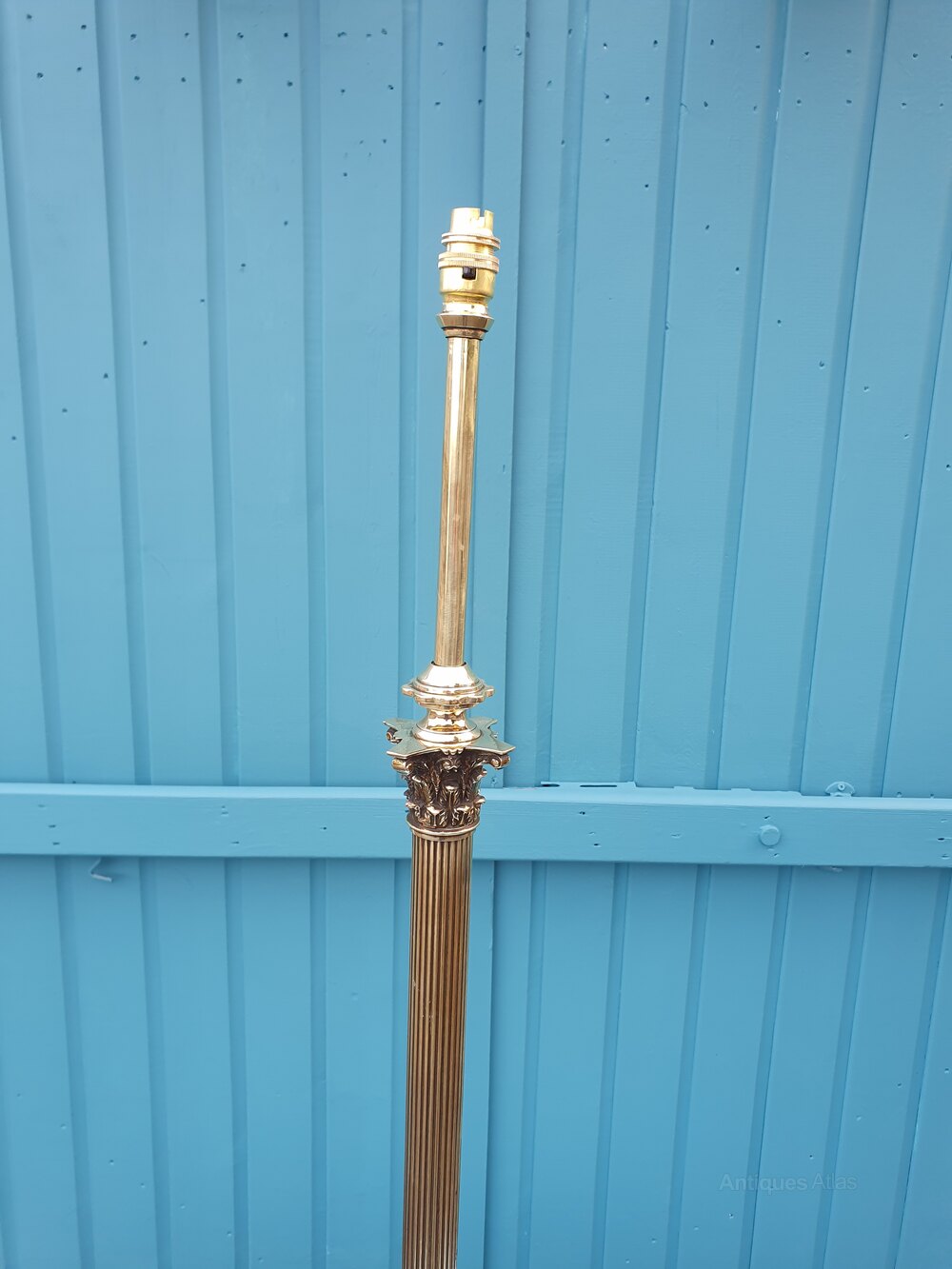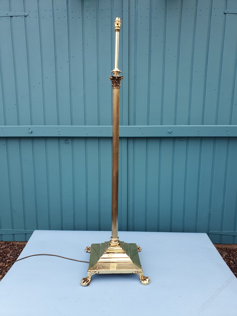 Nice Victorian brass standard lamp. This would have been adjustable originally the piece could be made 30 cm higher if needed. The lamp has a Corinthian column to the top with fine reeding to the base, which then tapers out. The piece has a heavy cast-iron section in the bottom for stability. It stands on brass hairy paw feet. Without the feet it measures 30 cm. This piece comes with a large bayonet bulb holder (B22) and 2 m of cable. This lamp weighs 13 kgDimensions in centimetres