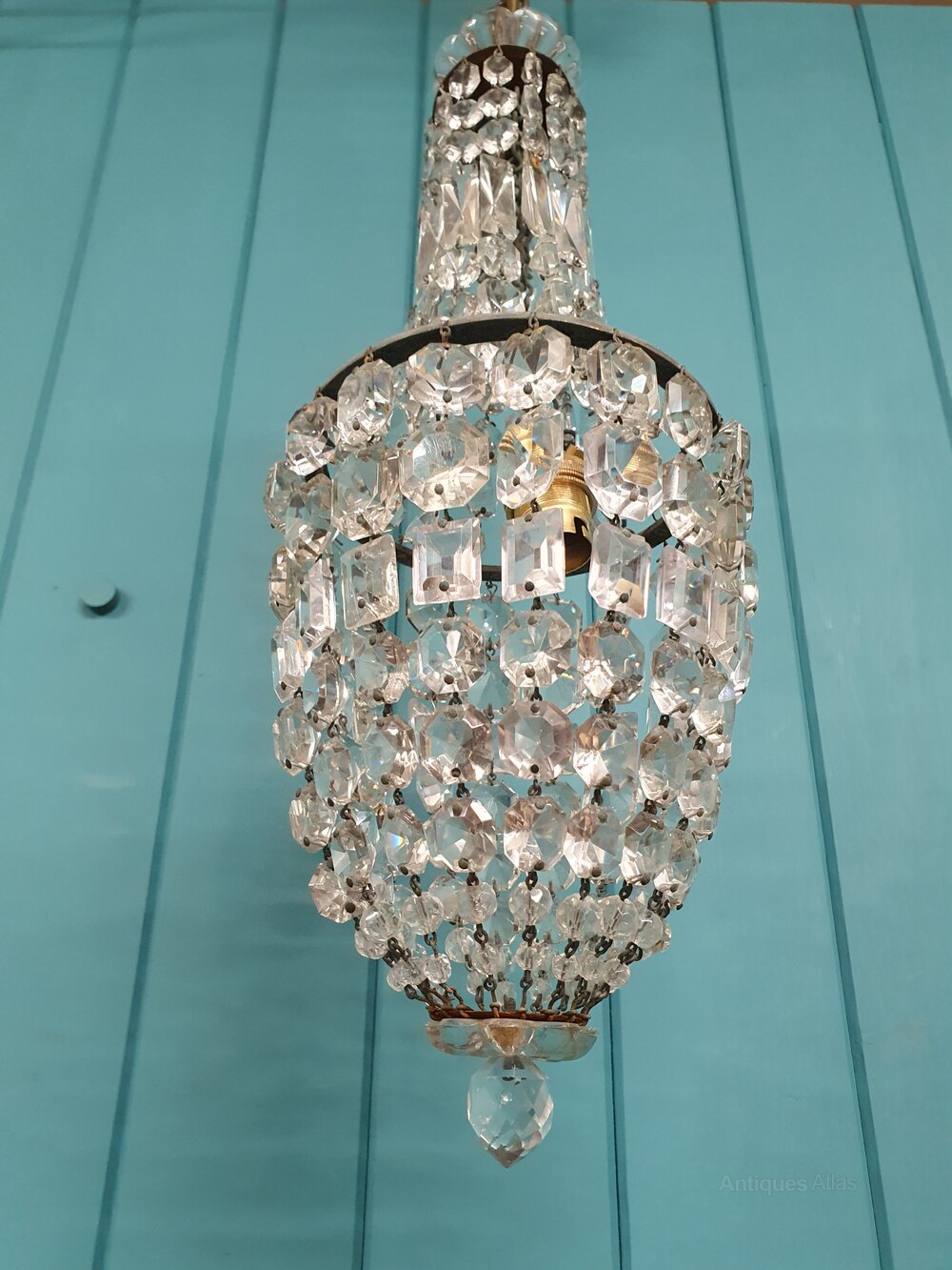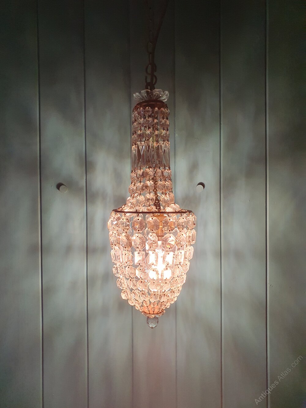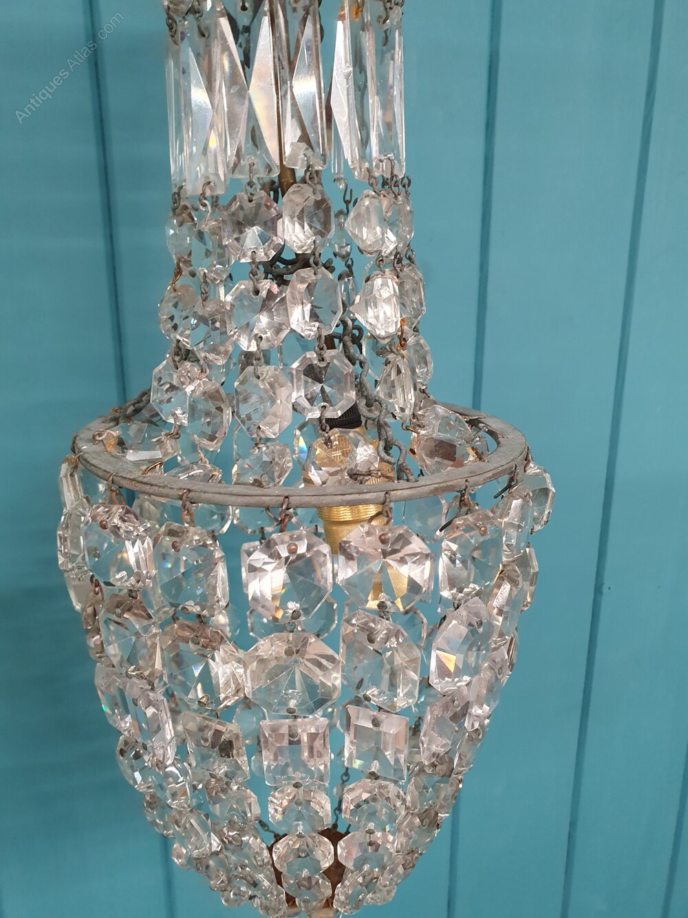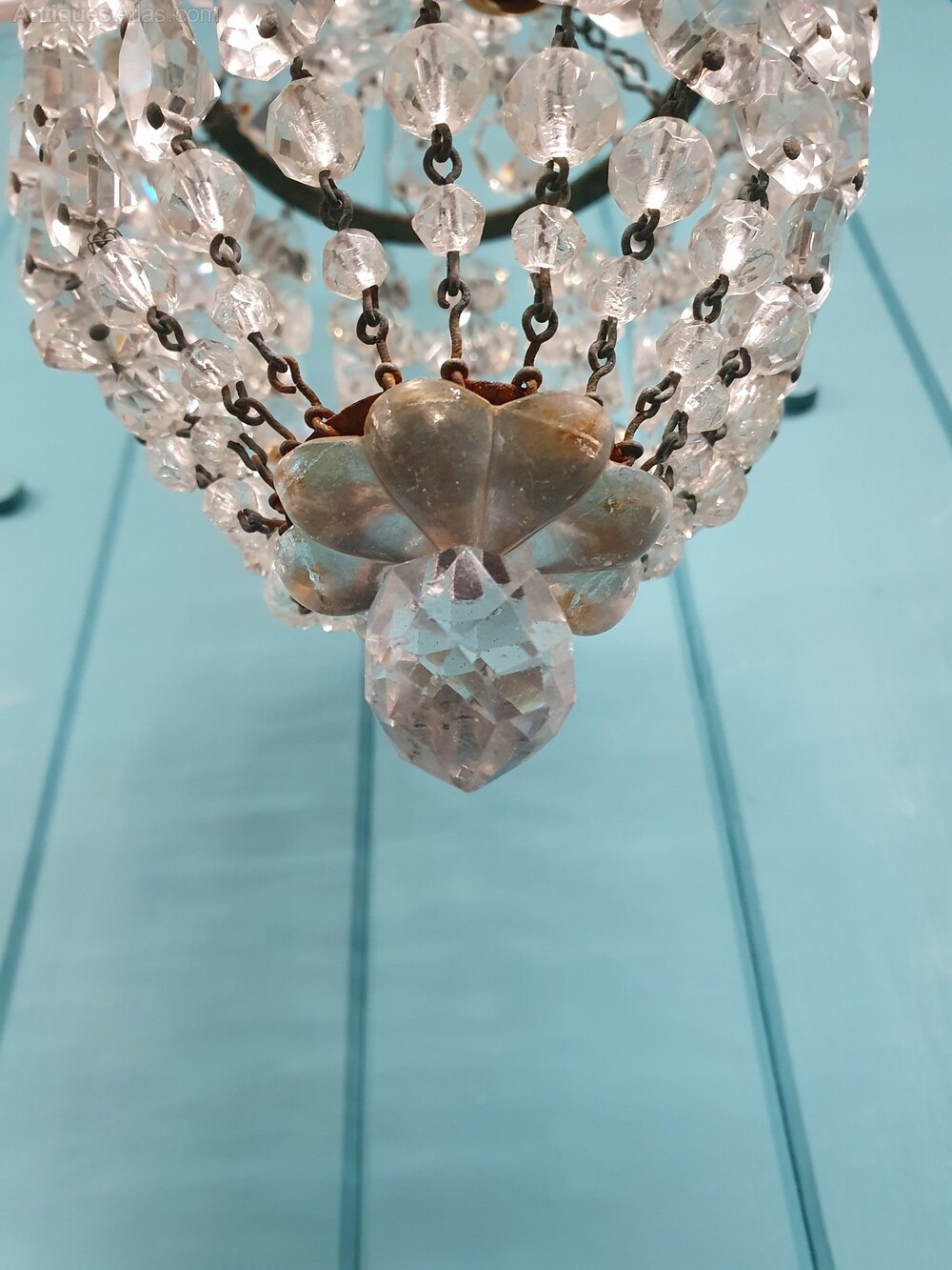 Small Antique Cut Glass Crystal Tent Chandelier 6"