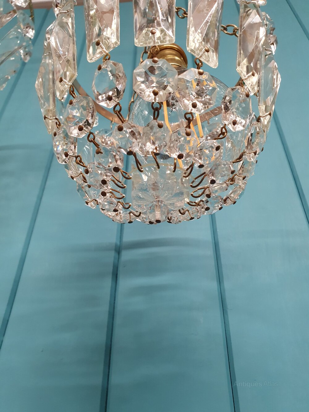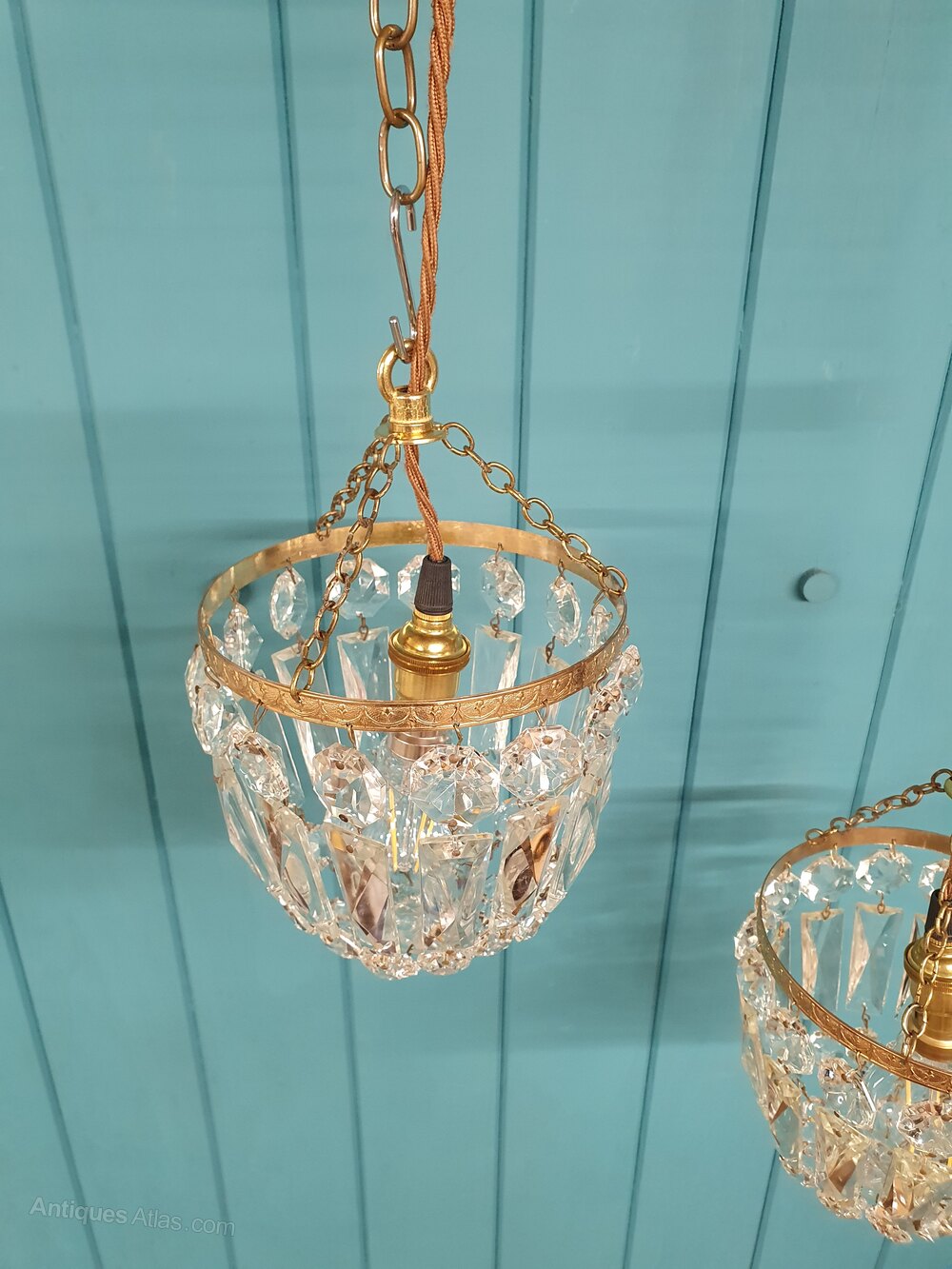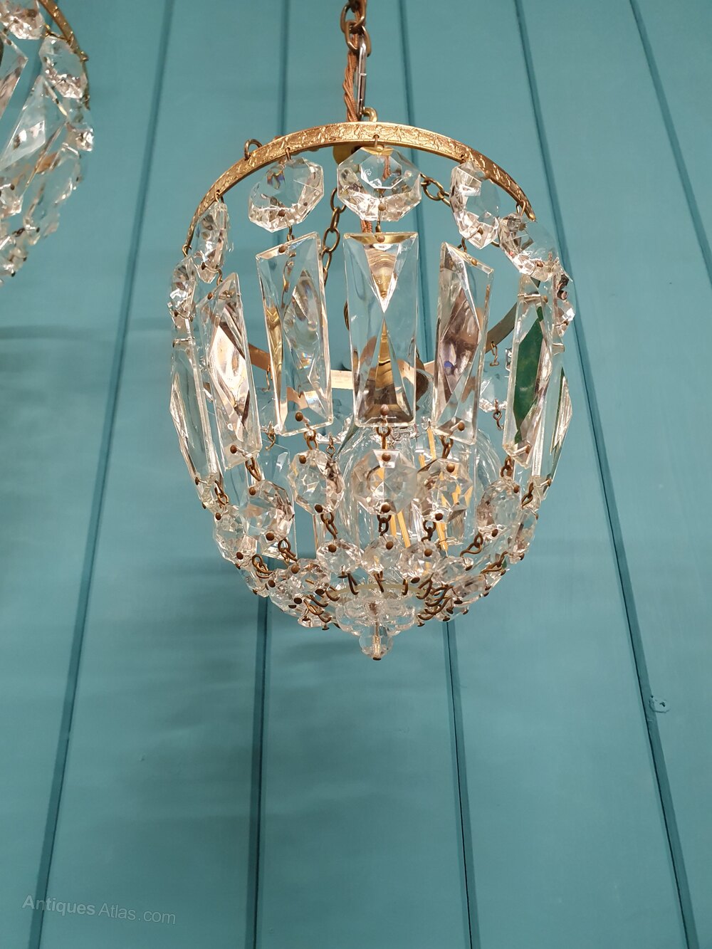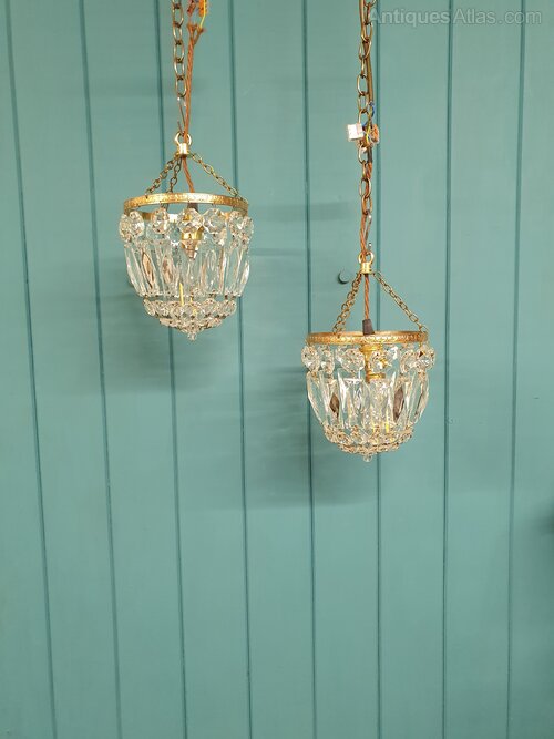 Antique Pair Of Prism Bag Chandeliers 6"