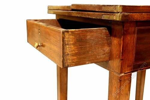 Raised on square, tapering legs of good proportion, the table displays attractive colour and patination throughout, with well-matched mahogany timbers and a pleasing surface. The simplicity of the design and slender proportions are typical of the late Georgian period.