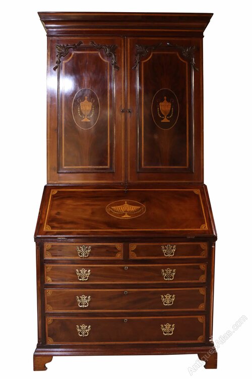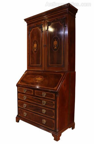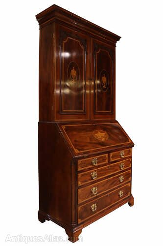 Fine William IV Inlaid Mahogany Bureau Bookcase