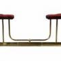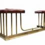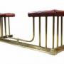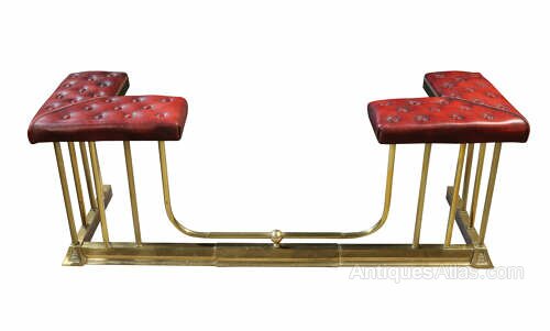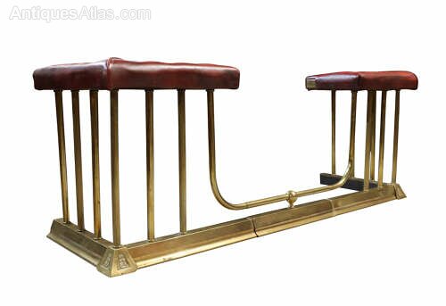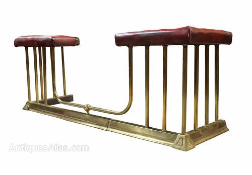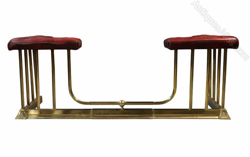 Early 20th century brass and buttoned red leather club fender with alternative fluting and plain uprights and adjustable curb.Internal dimensions 35.5 deep and 124cm width