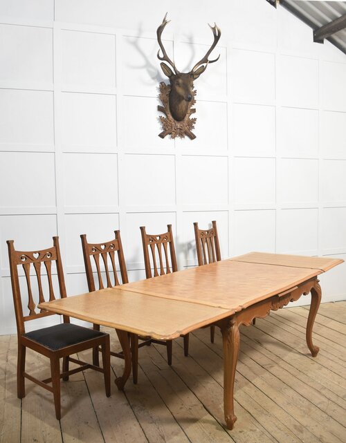 Oak Parquetry draw leaf table