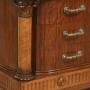 The chest is fitted with a beautifully polished marble surface in warm, softly veined tones. Beneath the carved foliate frieze are two long, slim concealed drawers, with three substantial full-width drawers forming the main body. Each drawer retains period-style brass handles and operates smoothly. The case is framed by turned and carved columns, with the lower apron decorated by fluting and rosette motifs and supported on boldly carved feet.