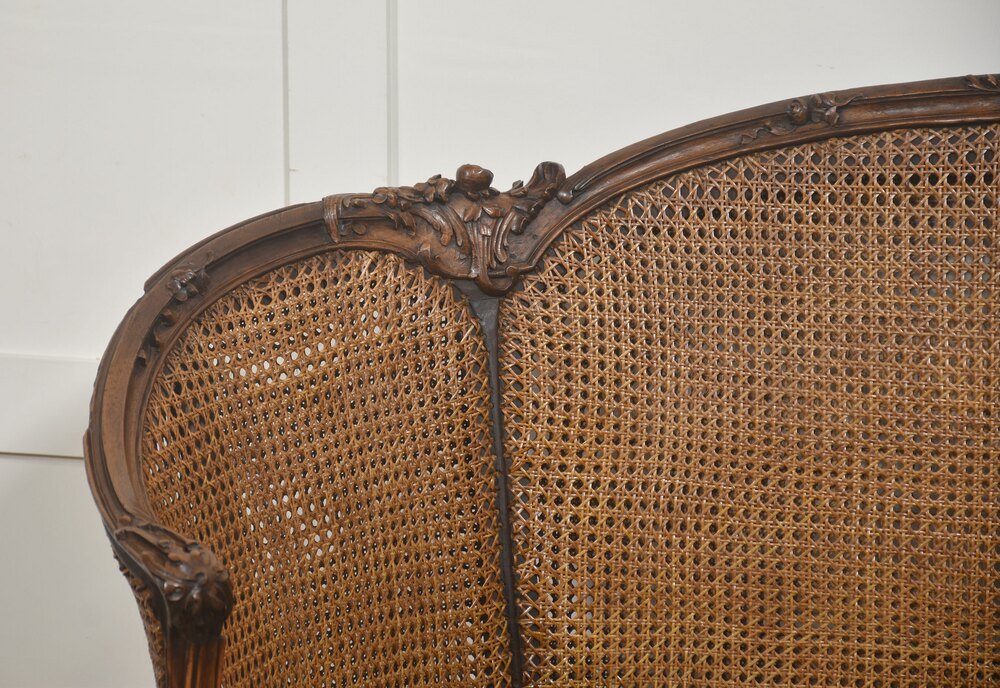Louis XV–Style Carved Walnut Caned Settee
