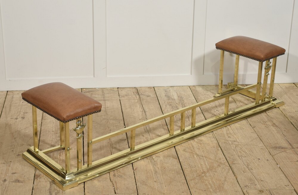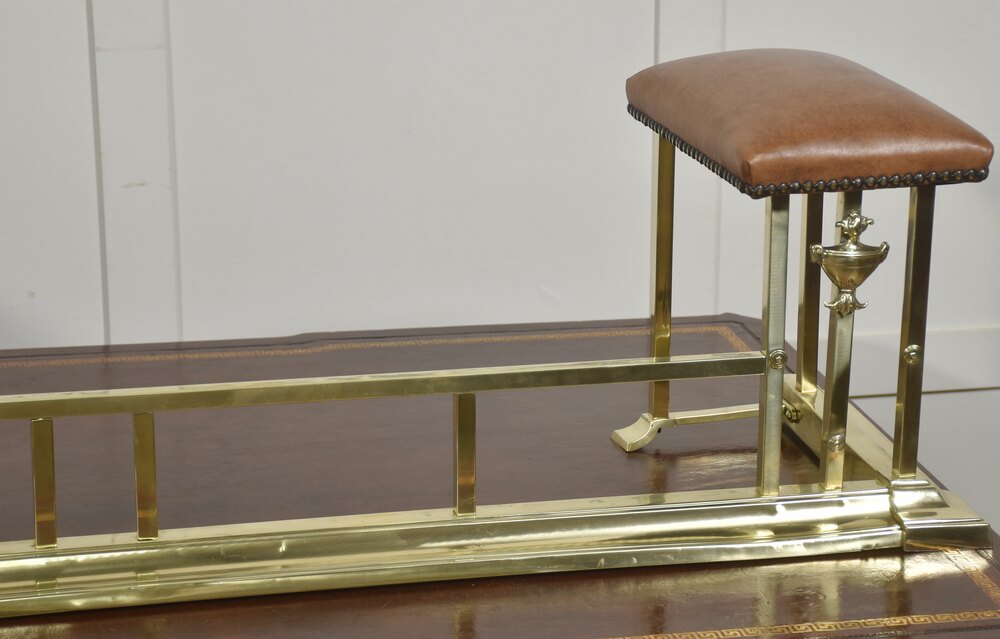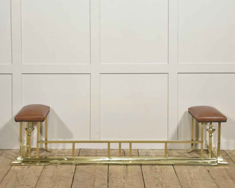 Brass and Leather Club Fender with Upholstered End seats
