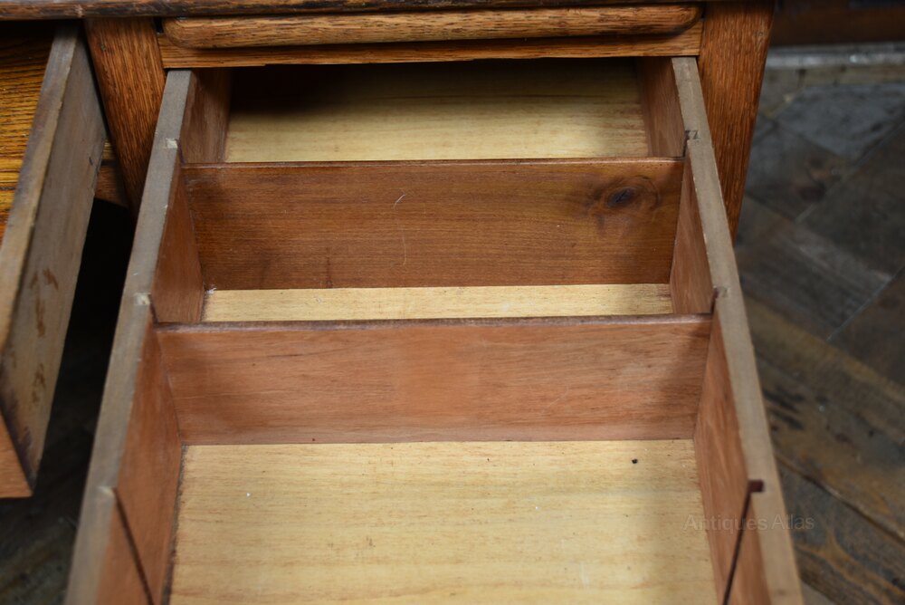 This handsome Scottish roll-top desk is crafted from solid oak and remains in excellent antique condition, complete with its working key. Designed in four sections for easy transport and assembly, it balances practicality with timeless appeal. The upper roll-top glides open to reveal a beautifully fitted interior of drawers, pigeonholes, and compartments, perfect for keeping correspondence neatly organised. Below, the twin pedestal bases provide generous storage with graduated drawers and convenient writing slides. Decorative carved handles and label holders highlight the craftsmanship of Scottish cabinet-making. As with all antiques, small imperfections add to its character, while the glowing oak patina, fine detailing, and sturdy build make this desk both functional and elegant, a wonderful addition to any study, library, or collector’s home.Internal Reference: SAI4029