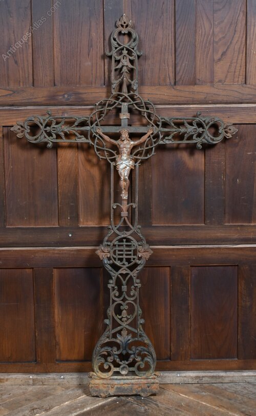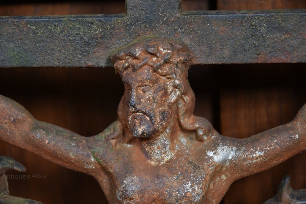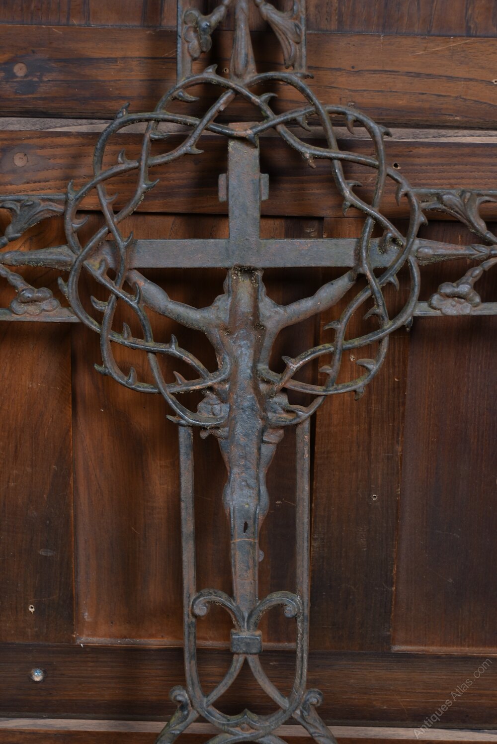 A wonderfully decorative Victorian cast-iron crucifix in wonderful antique condition. This has beautifully detailed scrollwork and foliate ornamentation and has honest wear consistent with age. Richly patinated and full of character, it makes a striking and evocative statement piece for any interior.Internal Reference: SAI4074