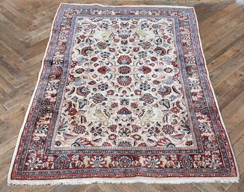 A beautifully woven Persian‑style rug presented in clean, usable condition. The rich palette of reds, blues and creams is framed by a series of decorative borders, giving the piece wonderful depth. The rug retains its vivid colouring and intricate detailing, celebrating its artisanal heritage and vintage charm. A decorative piece woven by skilled hands, it brings warmth, character, and timeless appeal to any interior.Internal Reference: SAI4083