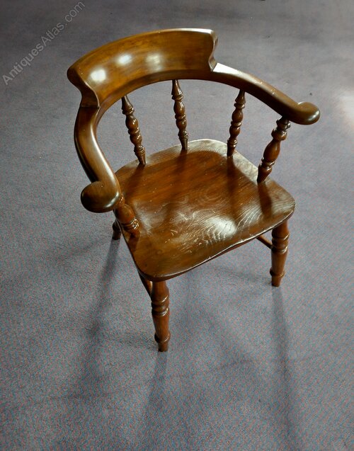 A clean captains chair from the 1800s which has been cleaned and refinished in our workshops so is in great condition. Turnings are nicely done and the arm has the lovely tactile round pad shape on the end, not the later more squared off one. A surprisingly comfy tub shaped chair that can be used for occasional extra seating or these do make a superb desk chair. Description76 high 54 deep and 65 cms on widest pointDimensions19th CenturyDateas017a2411Code01565 874075Contact£265 Price€304.38 $357.17 Euro & Dollar conversion rates as of 22/JAN/2026 Always confirm final price with dealer