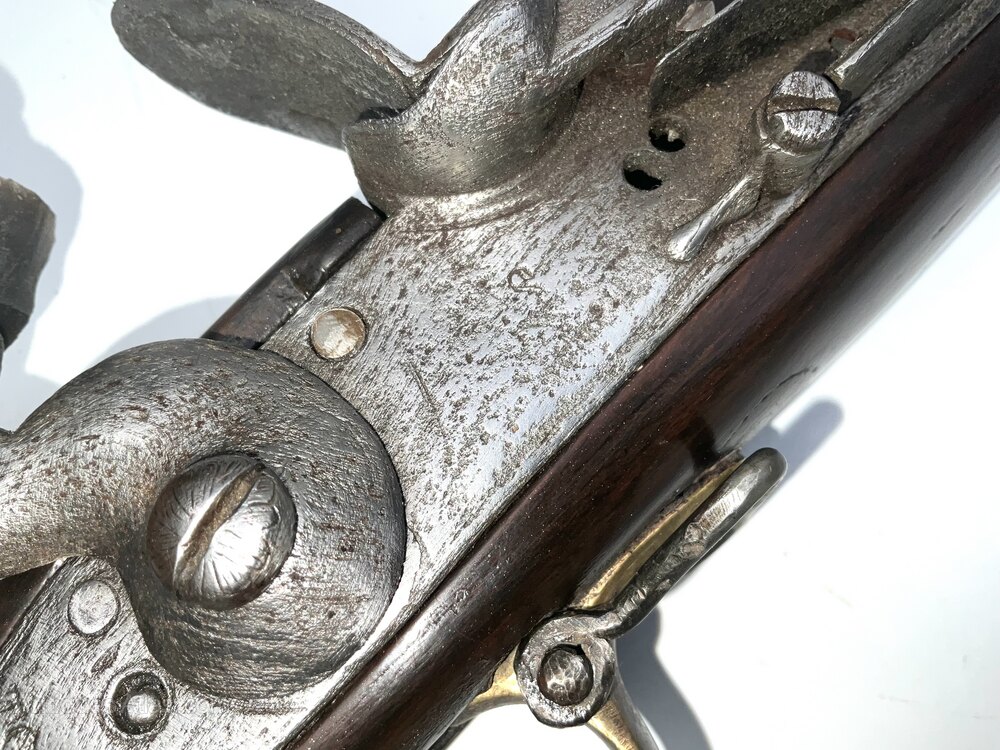 Awesome musket, this is the 39 inch barrel model of this most famous musket, used from the early part of the 18th century was used by both sides in the revolutionary wars in service with the British army from 1722 to 1867, this one showing its been through most wars, the action is working the locks stamped Tower the Crown is worn away as is the GR there is some of both still showing but hard to decipher, the barrels showing same with the stamps, full length of 143 cm width 11 cm at butt height of 12 cm, offering free UK delivery, reference DBSS. Tel: +44 7505 165 843 We accept online payments for all our items listed: Bank transfer cash on collection or if wishing over the phone using your debit or credit cards, also doing layby payments plan, or email giving your address details & contact number and we shall send you your items invoice to make payment with your card. Send your request to - john.strong2@gmail.comWe now are only operating as an internet shop, We are passing on these savings to our customers making the prices more reasonable. Having turned to the internet and finding that all over heads are kept to a absolute minimum we related that this is the best way forward for any antique dealer or collector to display therein items on one to an enormous audience.