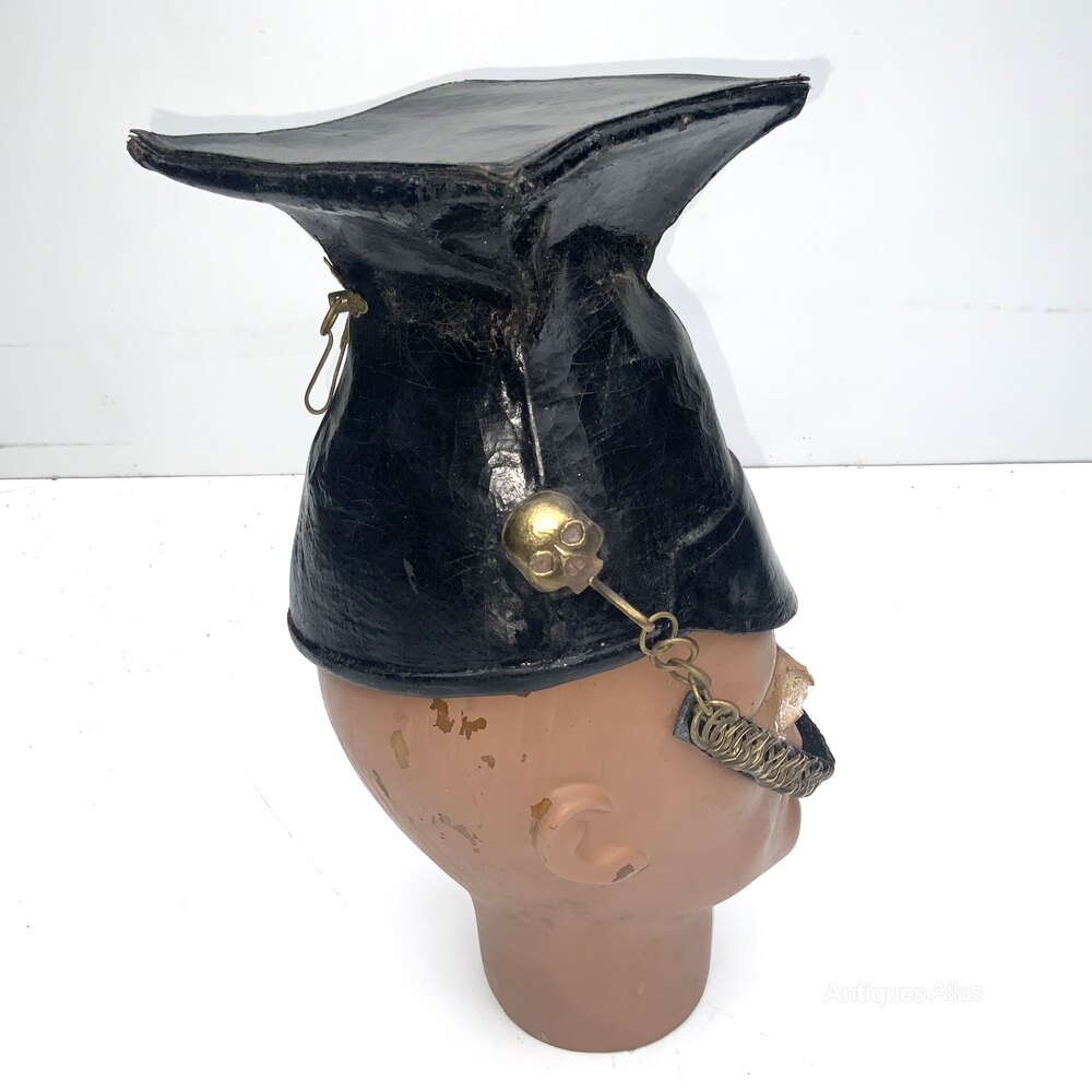 17th Lancers Foul Weather Officers Lance Cap, light weight black leather covered helmet having gilt metal skull side bosses holding leather backed linked gilt brass chin chain. Leather covered dome fitting to represent the rosette. Interior has the leather sweatband and crimson lining. Overall conditions quit good fantastic item from my late Fathers collection, offering free worldwide delivery, reference FRC. Tel: +44 7505 165 843 We accept online payments for all our items listed: Bank transfer cash on collection or if wishing over the phone using your debit or credit cards, also doing layby payments plan, or email giving your address details & contact number and we shall send you your items invoice to make payment with your card. Send your request to - john.strong2@gmail.comWe now are only operating as an internet shop, We are passing on these savings to our customers making the prices more reasonable. Having turned to the internet and finding that all over heads are kept to a absolute minimum we related that this is the best way forward for any antique dealer or collector to display therein items on one to an enormous audience.