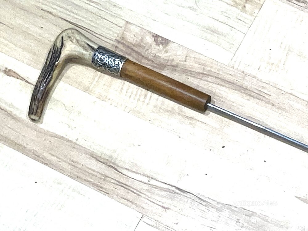 Superb Horn with silver mount with cartouche with engraved name, the wood being Malacca with good end ferrule stick, The blade being a rapier is high tensioned and immaculate, all fittings are firm and sturdy early 20th century length in total of 91 cm across handle grip the length is 12 cm, the sticks diameter from silver mounts 2 cm tapering down to the ferrule 1.5 cm, from the steel tip to top of the handle is 87 cm, offering free UK delivery, reference DB3 Tel: +44 7505 165 843 We accept online payments for all our items listed: Bank transfer cash on collection or if wishing over the phone using your debit or credit cards, also doing layby payments plan, or email giving your address details & contact number and we shall send you your items invoice to make payment with your card. Send your request to - john.strong2@gmail.comWe now are only operating as an internet shop, We are passing on these savings to our customers making the prices more reasonable. Having turned to the internet and finding that all over heads are kept to a absolute minimum we related that this is the best way forward for any antique dealer or collector to display therein items on one to an enormous audience.
