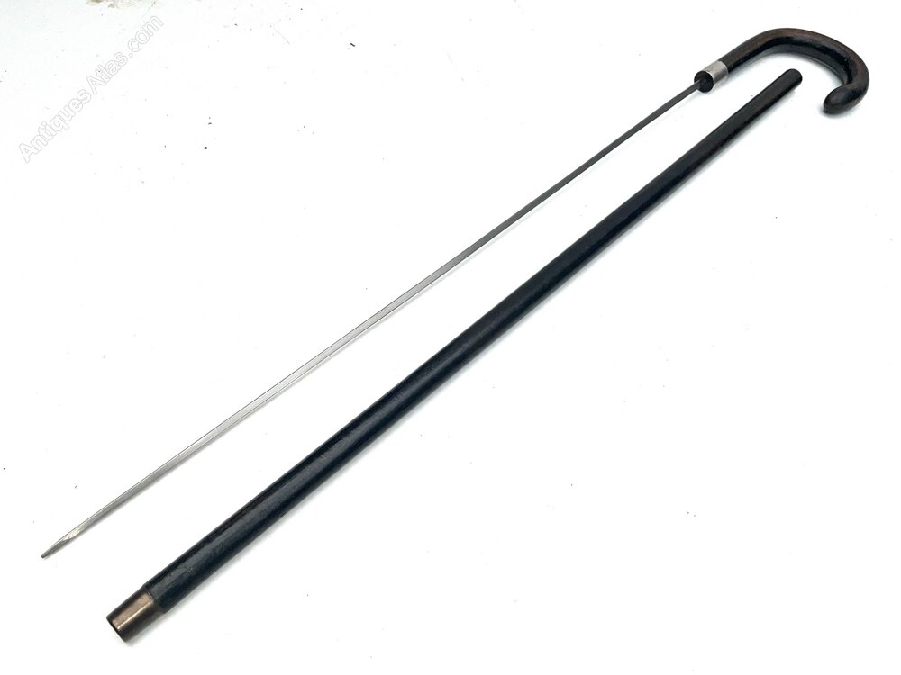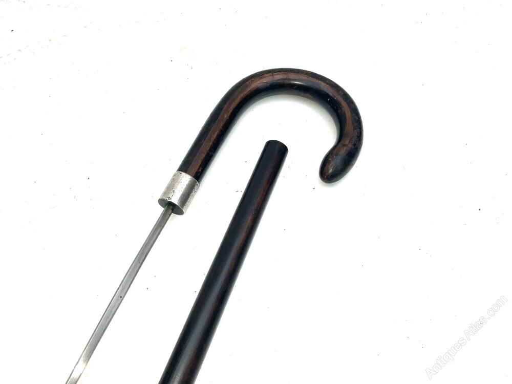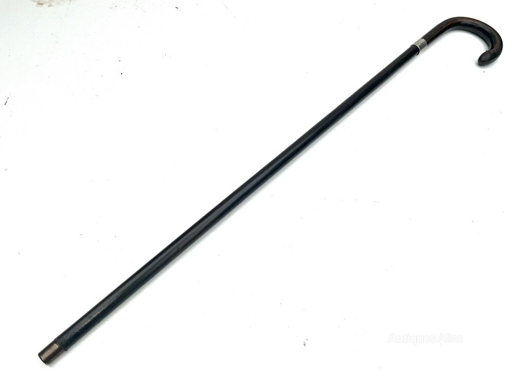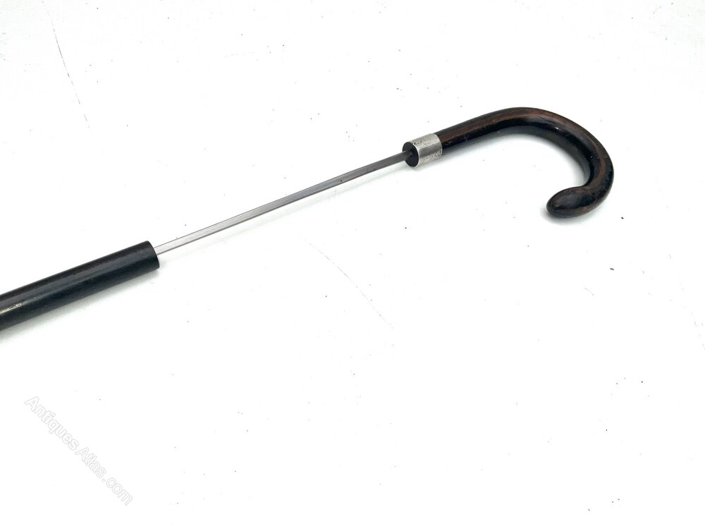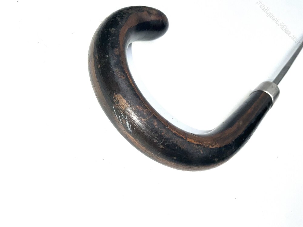 Crook handled hardwood stick, the plain silver collars hallmarked for London 1943, overall condition is very good, having the total length of 89 cm across the crook handle being 12 cm, diameter of stick from handles 2.5 cm tapering down to the ferrule 2 cm, from the high tensioned blades tip to top of handle is 82 cm, all fittings are firm and sticks exceptionally strong, offering free worldwide delivery reference AC7. Tel: +44 7505 165 843 We accept online payments for all our items listed: Bank transfer cash on collection or if wishing over the phone using your debit or credit cards, also doing layby payments plan, or email giving your address details & contact number and we shall send you your items invoice to make payment with your card. Send your request to - john.strong2@gmail.comWe now are only operating as an internet shop, We are passing on these savings to our customers making the prices more reasonable. Having turned to the internet and finding that all over heads are kept to a absolute minimum we related that this is the best way forward for any antique dealer or collector to display therein items on one to an enormous audience.