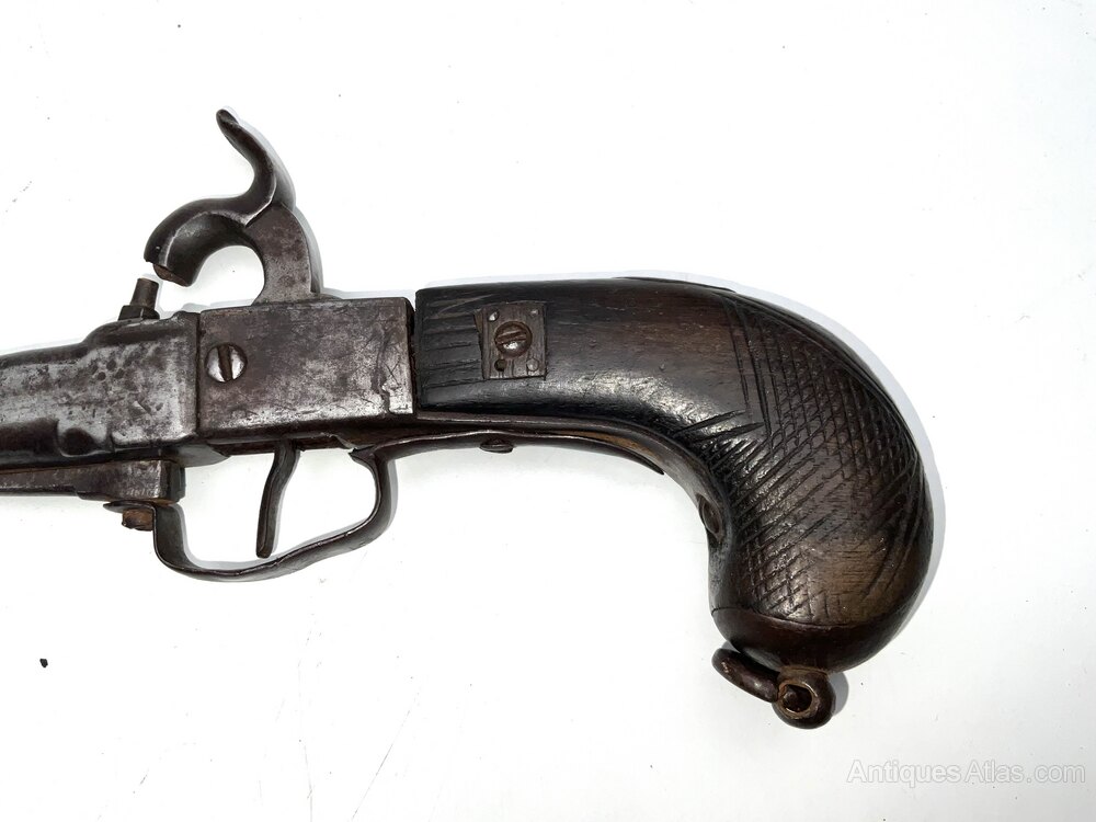 Interesting pistol, restoration project cocking needing attention guards a little bent and fowling the trigger, cocks and fires to a fashion, length of 32 cm heights 12 cm when cocked width across butts 3 cm, offering free UK delivery reference DBSS.We now are only operating as an internet shop, We are passing on these savings to our customers making the prices more reasonable. Having turned to the internet and finding that all over heads are kept to a absolute minimum we related that this is the best way forward for any antique dealer or collector to display therein items on one to an enormous audience.