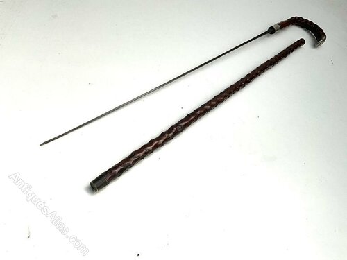 English Thorn Tree gents walking stick / sword stick hallmarks for Birmingham 1901 on the silver mounts, the sticks of The English thorn tree, lathe blade is high tension steel, and both are in the best of conditions. LENTH 93 CM WIDTH 14 CM DEPTG 2 CM OFFERING FREE UK DELIVERYWe now are only operating as an internet shop, We are passing on these savings to our customers making the prices more reasonable. Having turned to the internet and finding that all over heads are kept to a absolute minimum we related that this is the best way forward for any antique dealer or collector to display therein items on one to an enormous audience.
