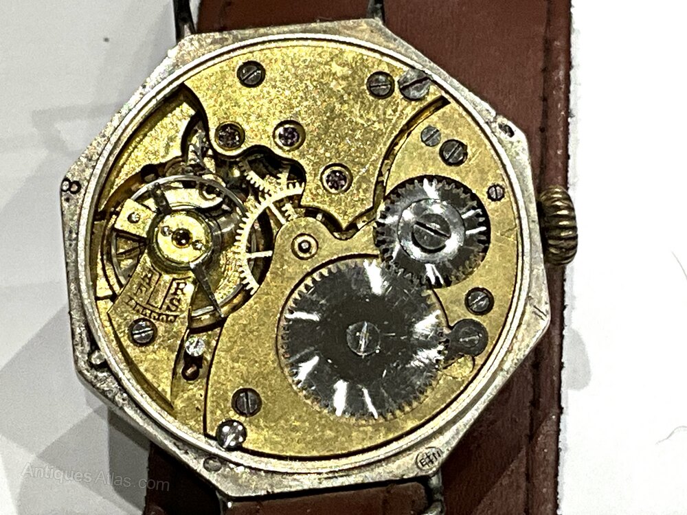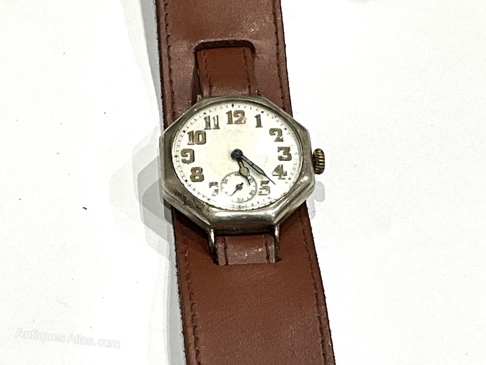German 1ww Soldiers Hexagonal Silver Wristwatch