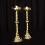 Condition: Very good clean condition. There are some scratches within the dished tops from use and there is a historical repair to one of the triform tops on the pierced gallery of one of the sticks, which is virtually invisible from the outside.