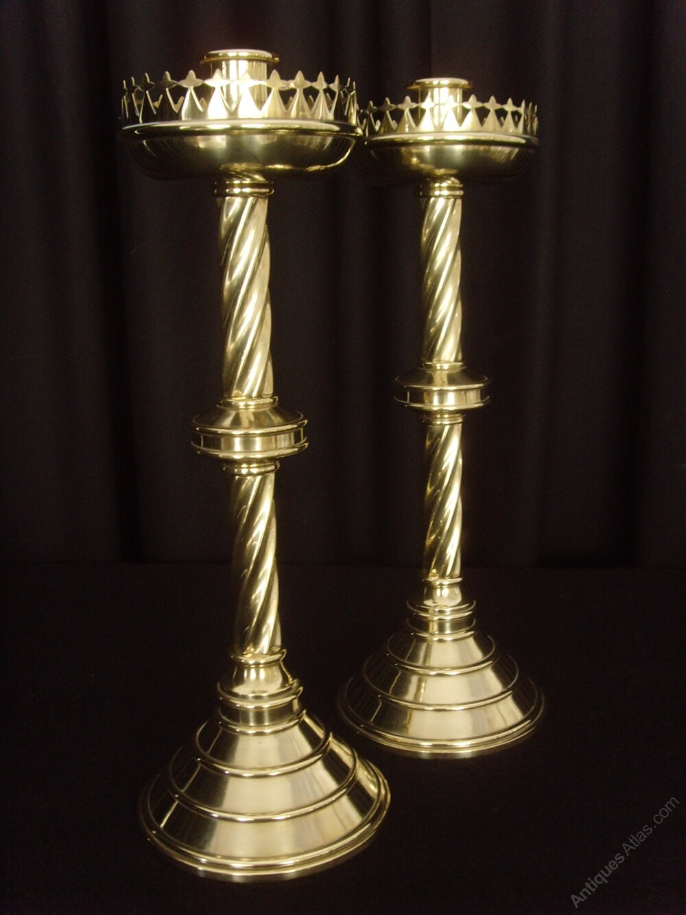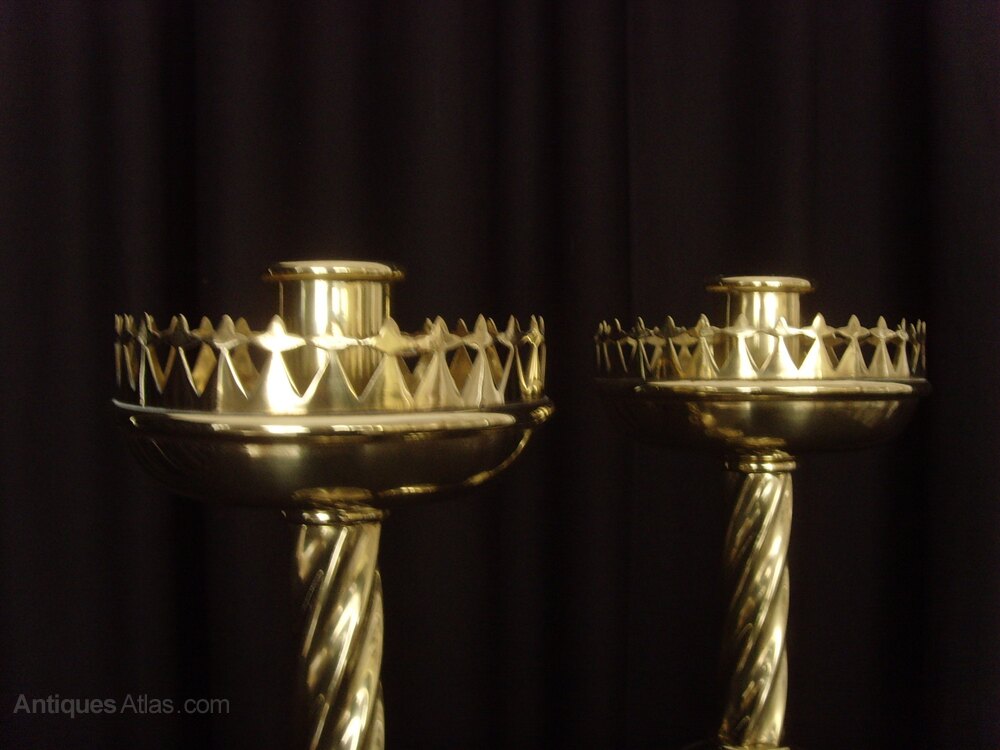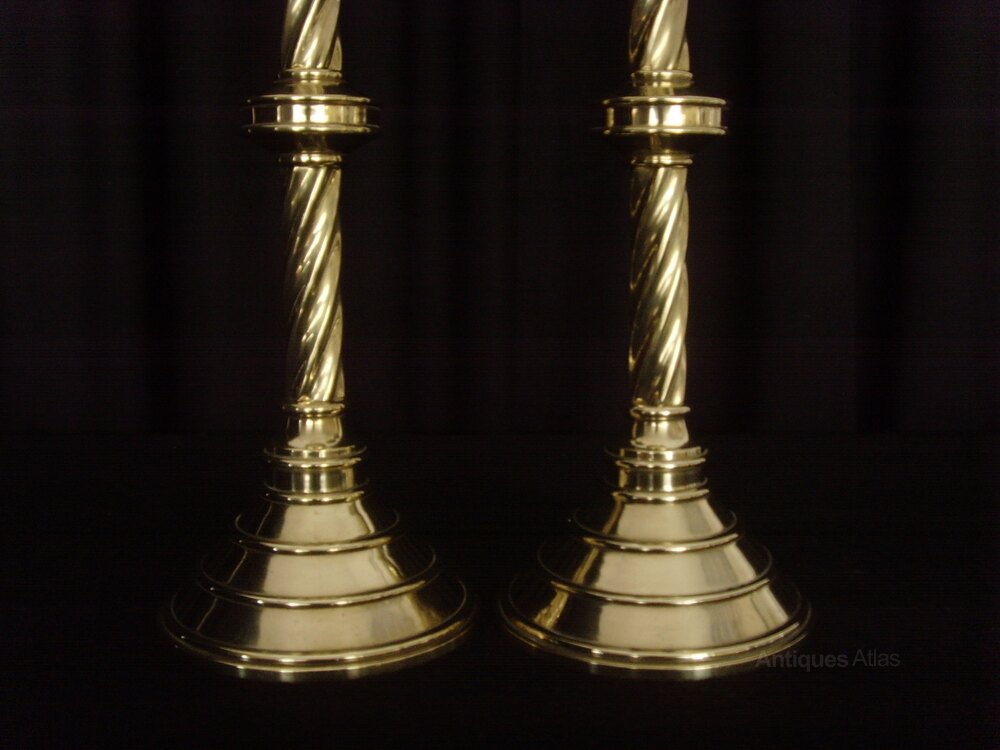 Pair Heavy Brass Gothic Twist Candlesticks