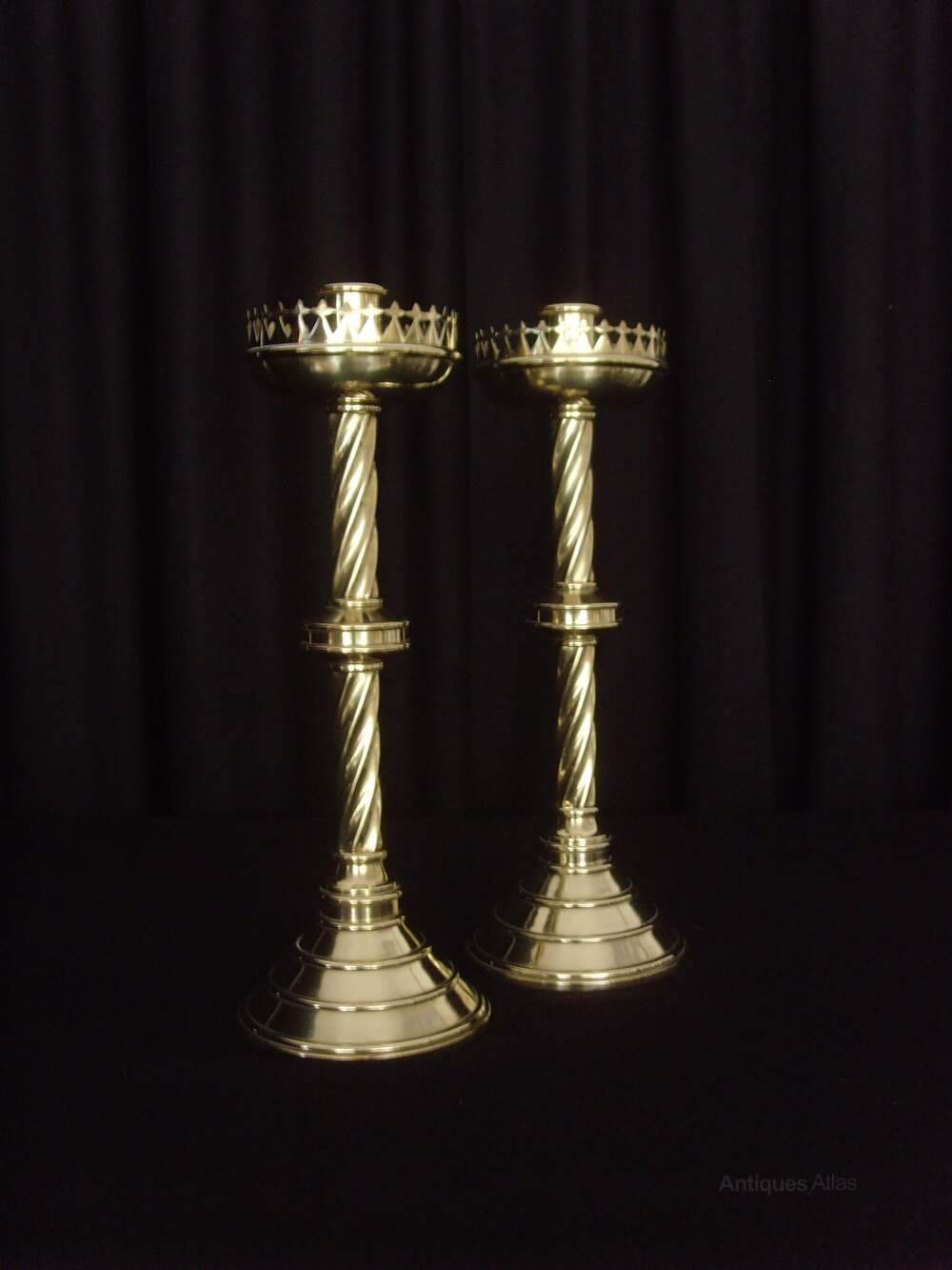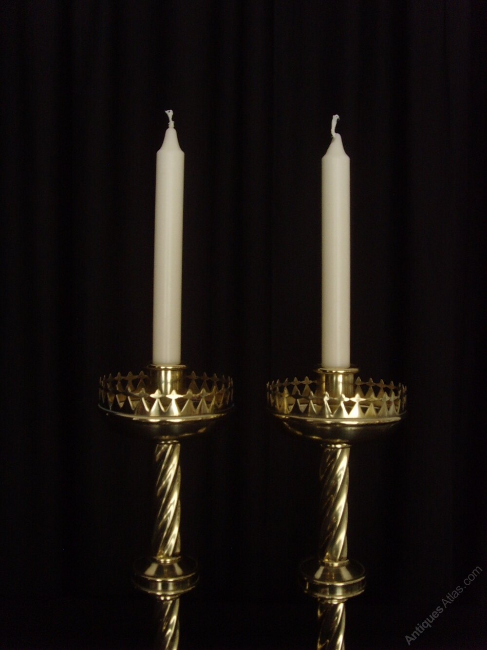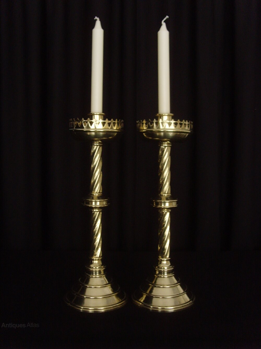 Pair Heavy Brass Gothic Twist Candlesticks
