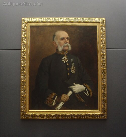 The portrait has been newly framed in an ornate, 4 inch gold frame, to echo the gold bullion embroidery on his collar and cuffs. It will be supplied with new brass fittings, new brass picture wire and will be ready to hang.
