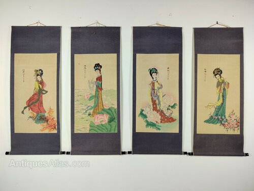 Chinese Silk Scrolls, The Four Beauties
