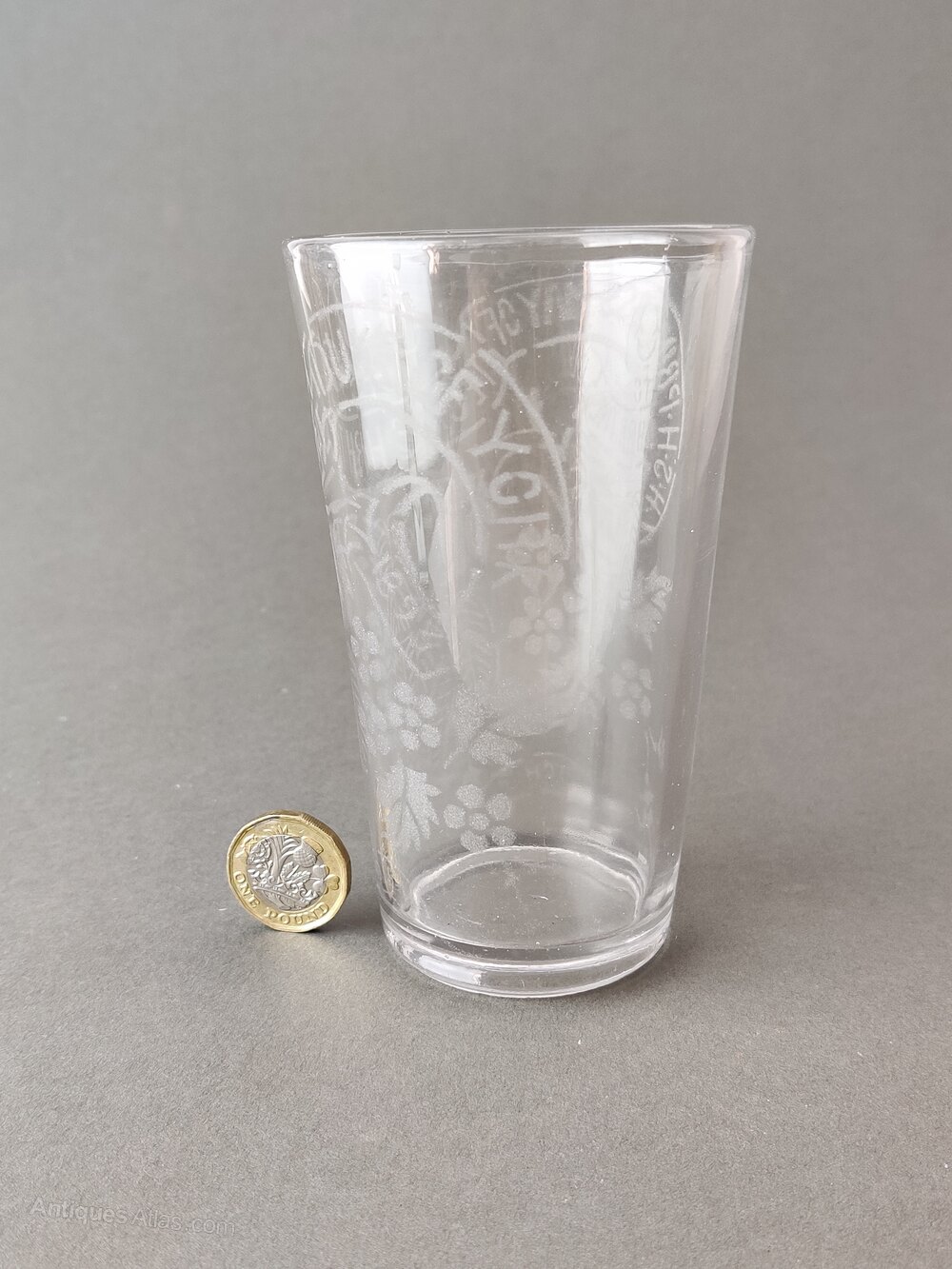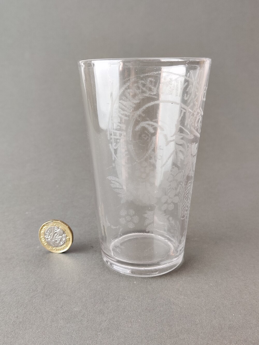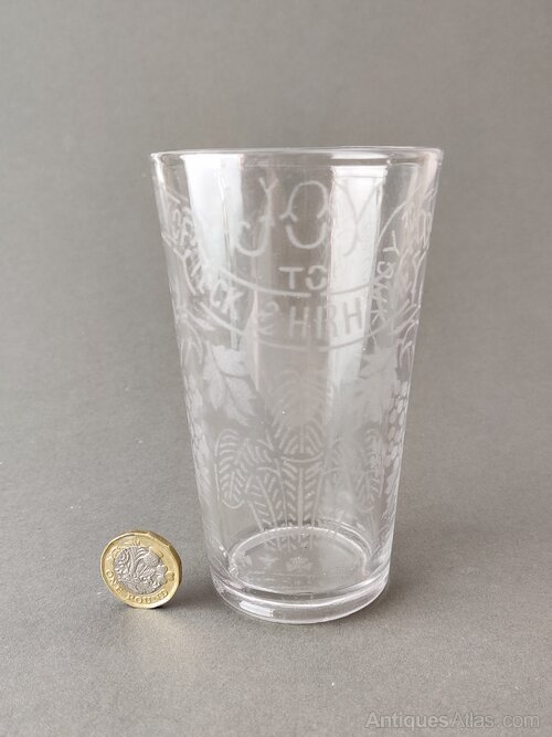 A great Vintage whisky/ale promotion glass. Acid etched with the inscription "Joy to - HSH Princess May of Teck and HRH The Duke of York 1893"This glass is very usable and in lovely condition, great for a whiskey drinker and a great addition to any home or gift for someone special.