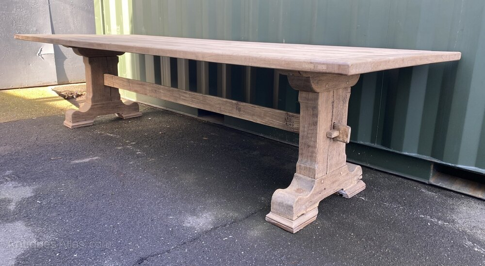Huge Long & Deep Bleached Oak Farmhouse Table