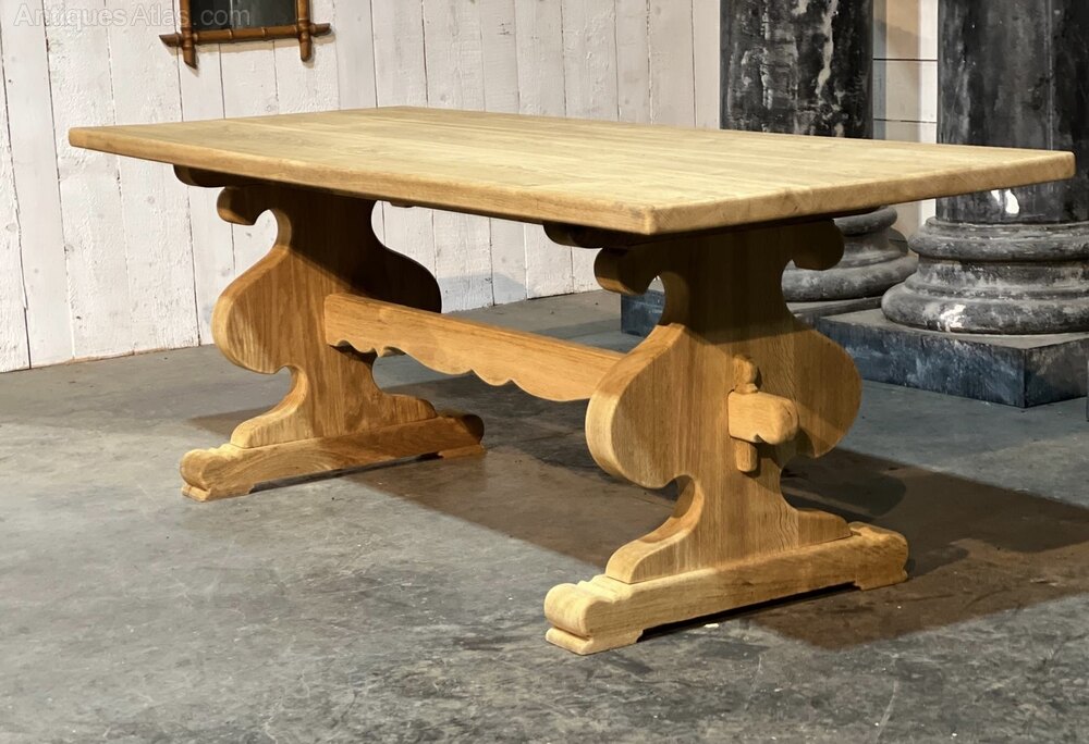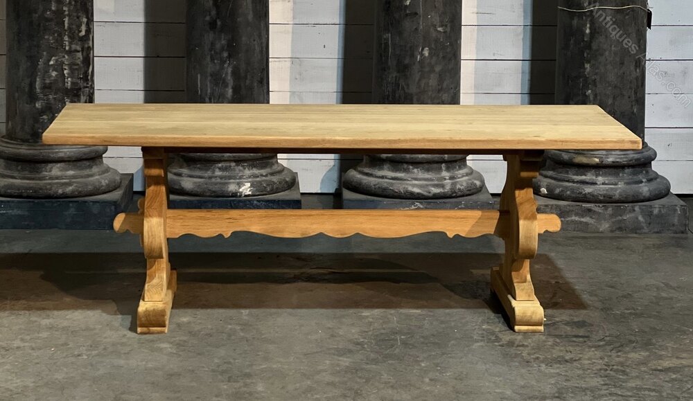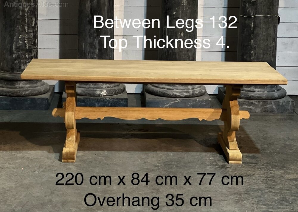 A good quality French Solid Oak Farmhouse Dining Table. Dating to the early 1900s and of good quality construction. It totally comes apart for easy access into the home. We have bleached it for a lighter look and in excellent original condition.Length 220 cm