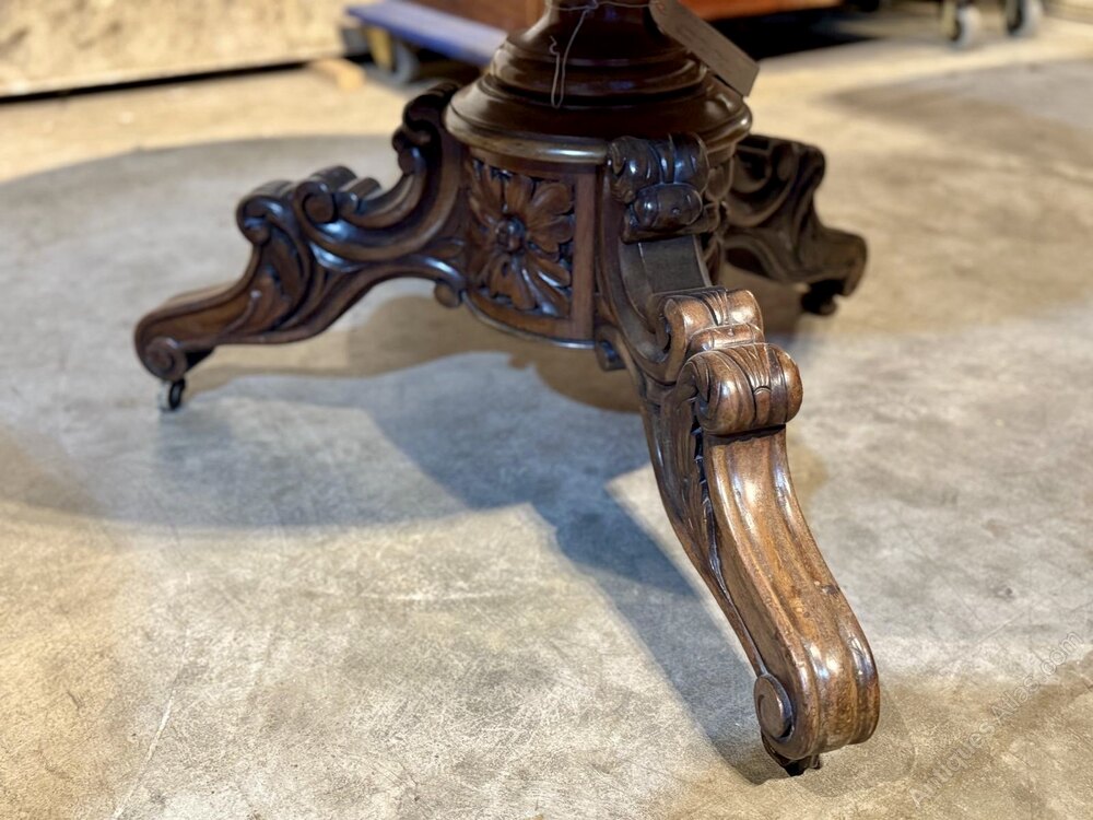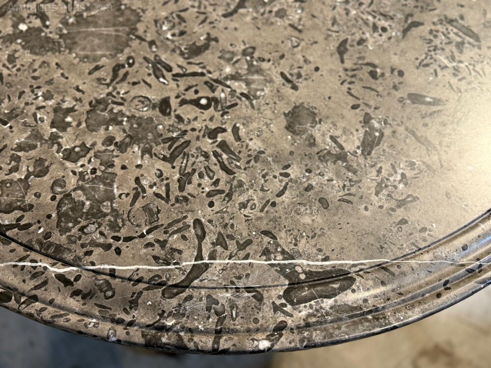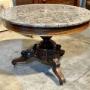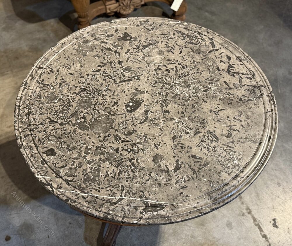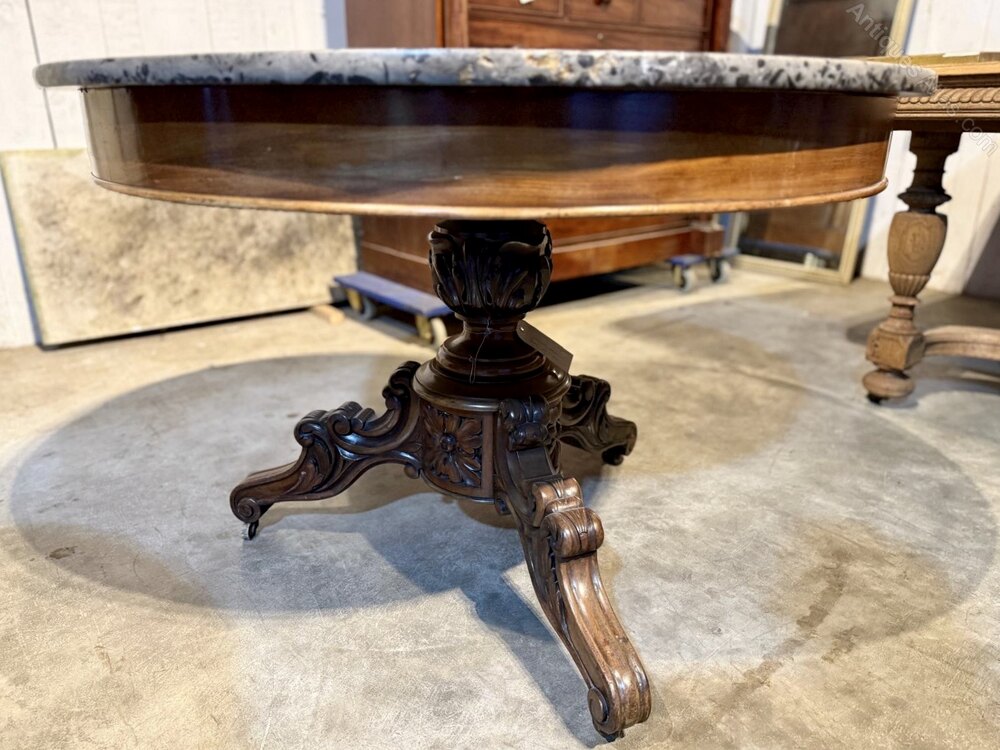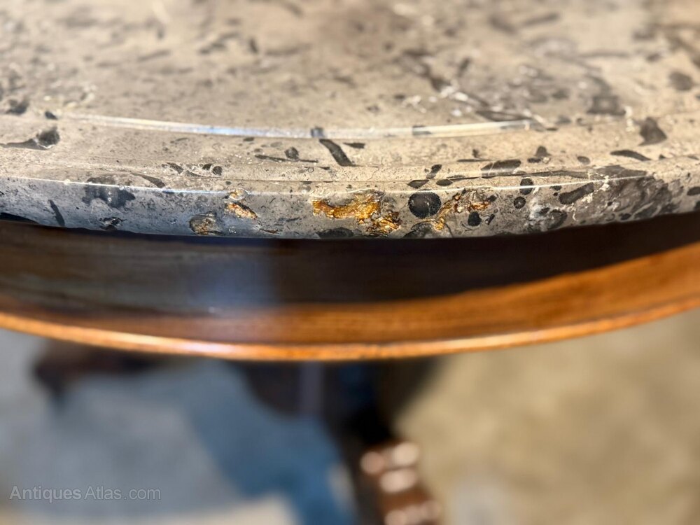 A lovely Gueridon Centre or Hall Table dating to the early 19th Century. Really nice original variegated marble top with carved concentric circles towards the edge. The base is mahogany with crisp carved decoration.In overall excellent original condition for the home.