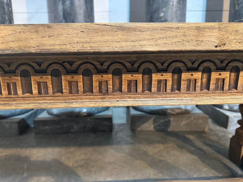 A good Solid Oak Dining Table having lots of character and nice carved side rails. Dating to the early 1900s and of good quality construction this table will be around for generations to come. The top comes off for easy access and in overall excellent original condition.Length 244.5 cm