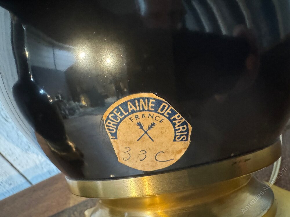 A high quality pair of French Table Lamps. Retaining their original retail label 'Porcelaine De Paris'. Made from solid brass and porclain. The shades are in a green velvet but you might want to use your own shades. In overall lovely original condition.Height with/without shades 82/52 cm