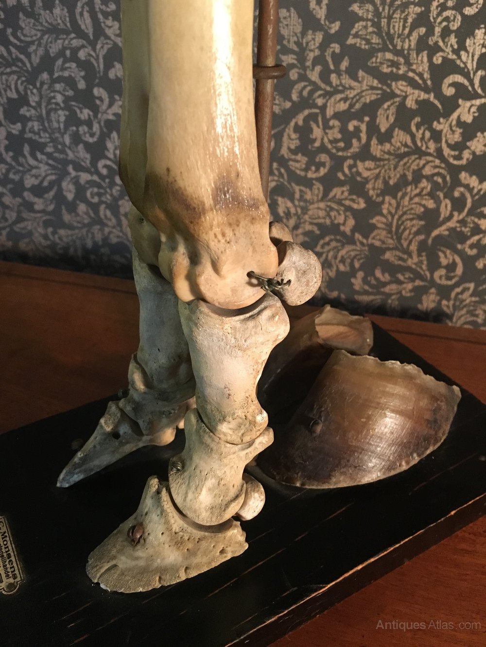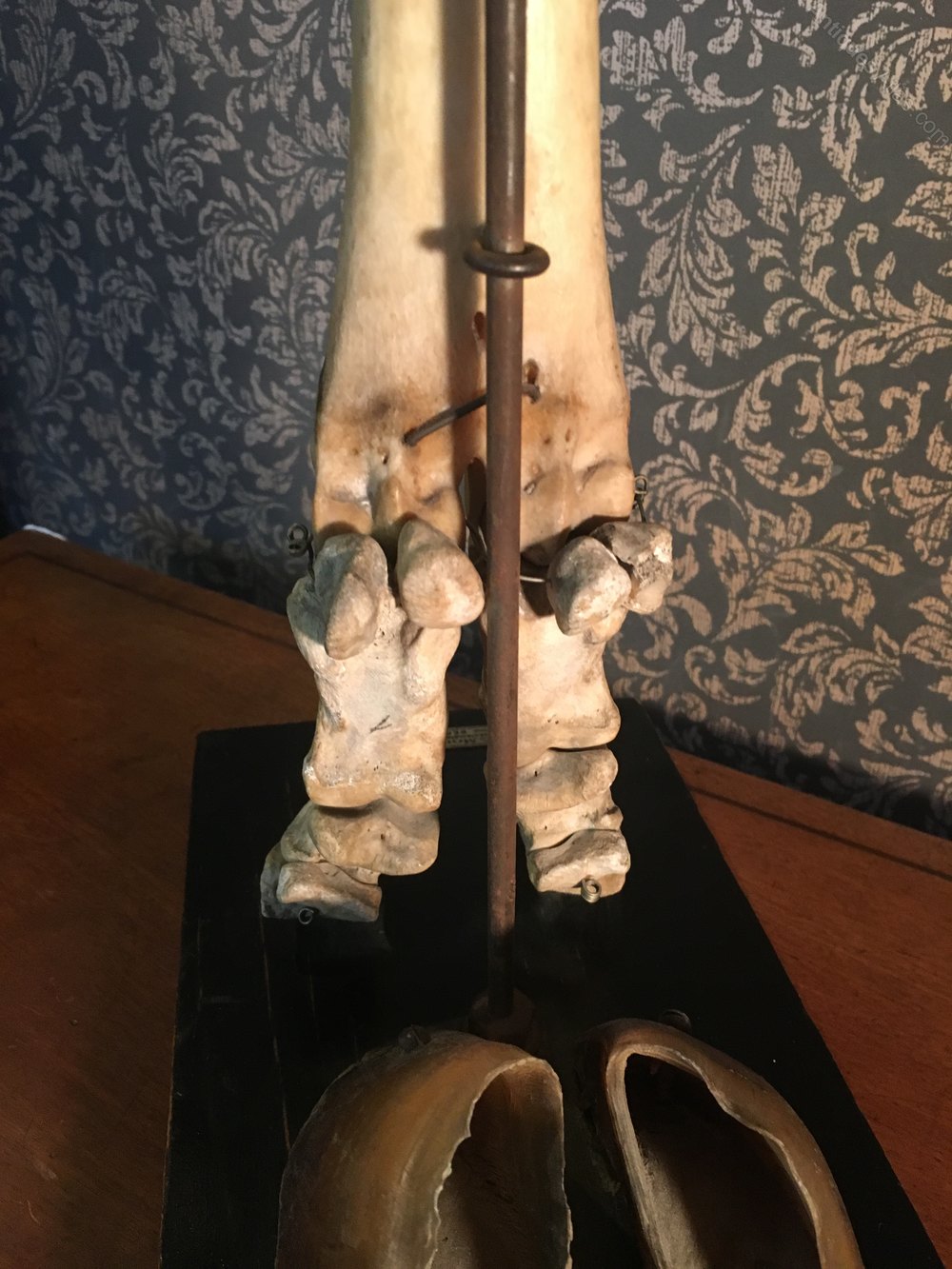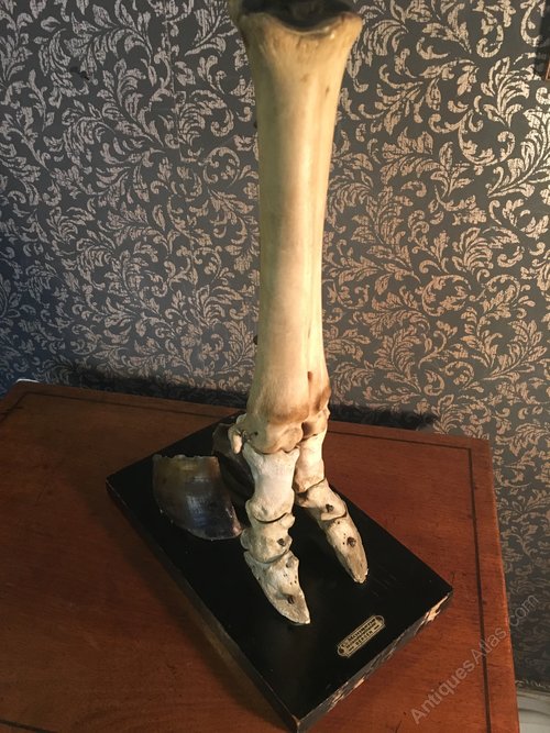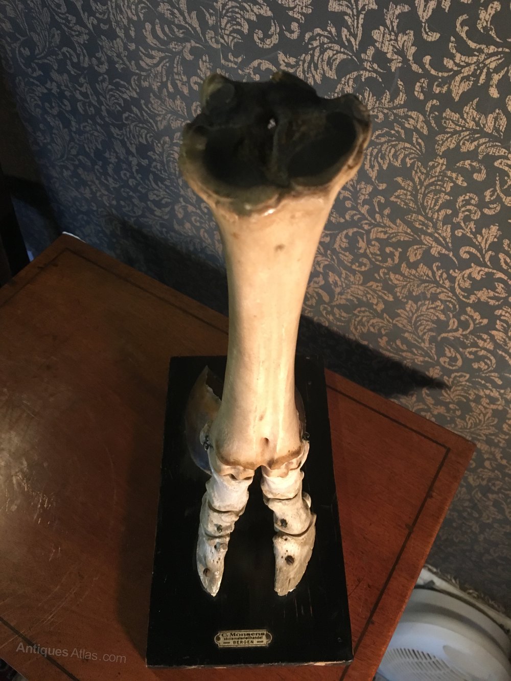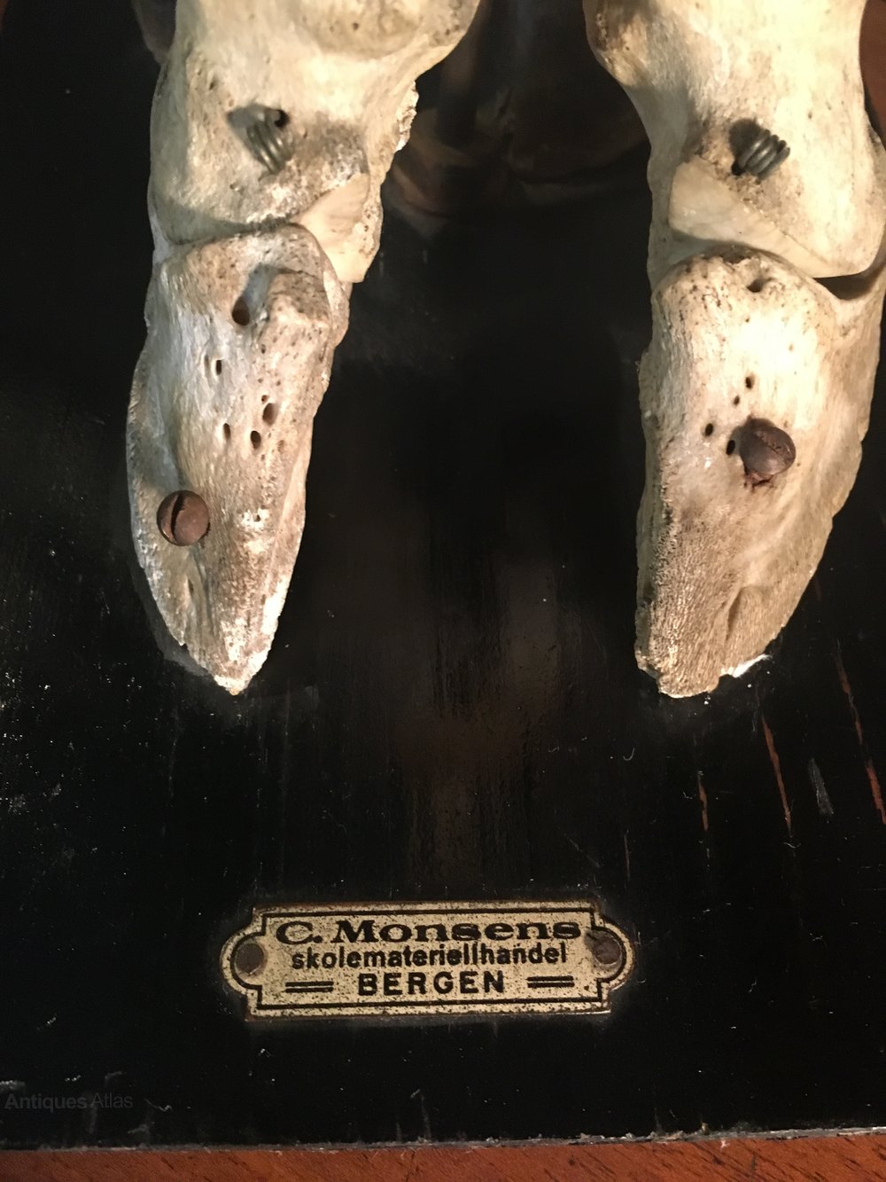 Medical anatomy, an early osteological study of cow's lower leg prepared by C. Monsens, Bergen on a rectangular base.From the Bergen School Museum