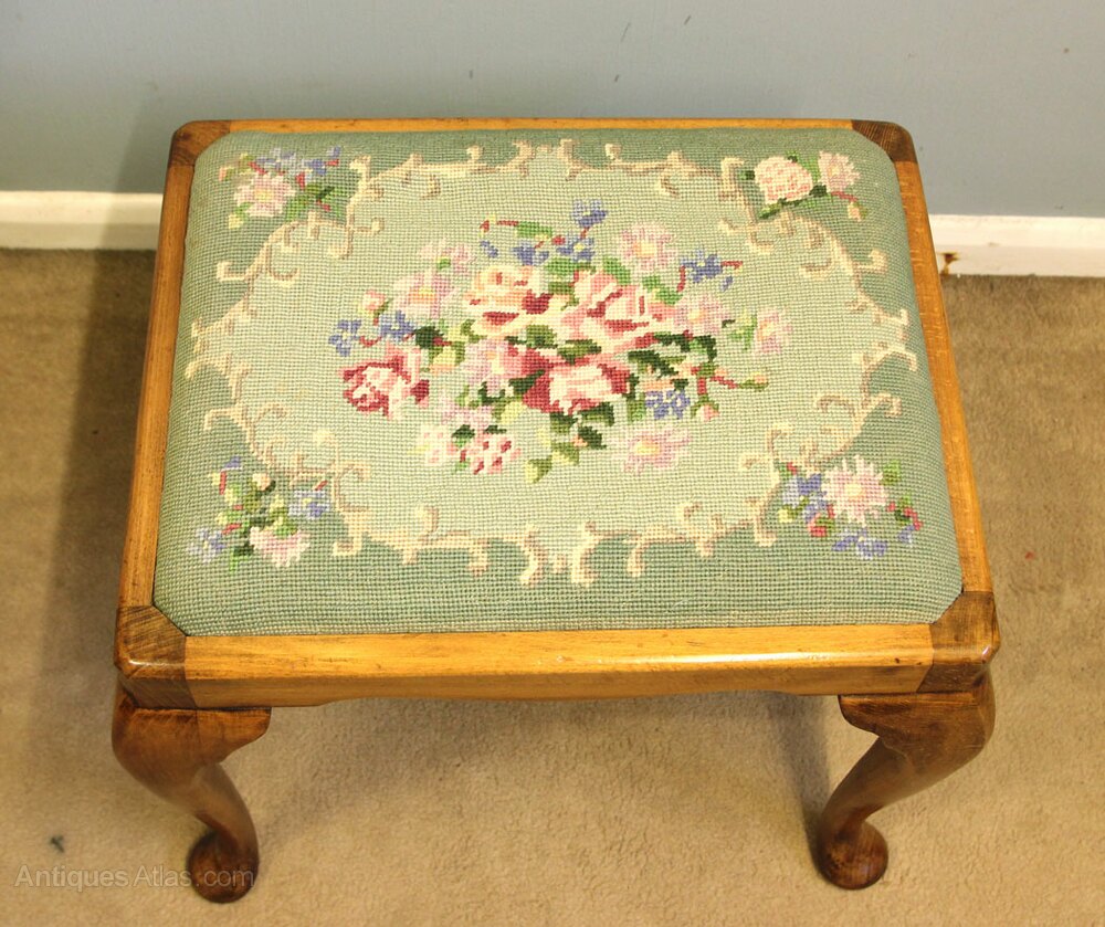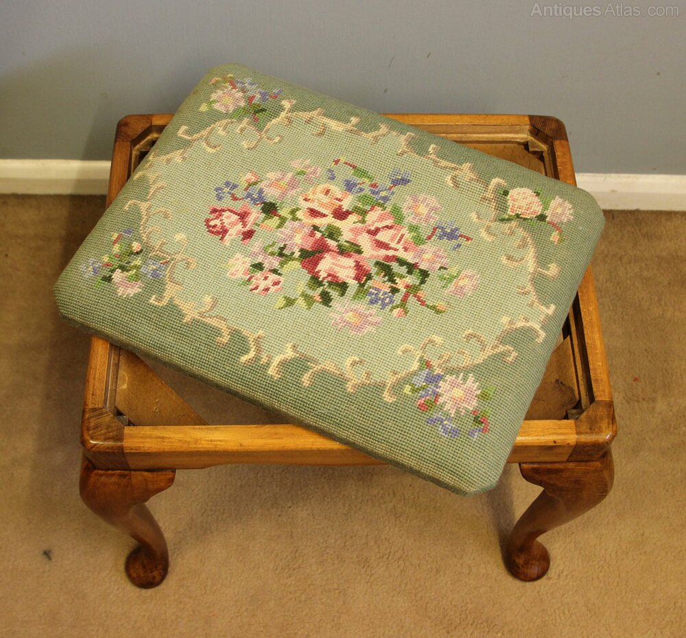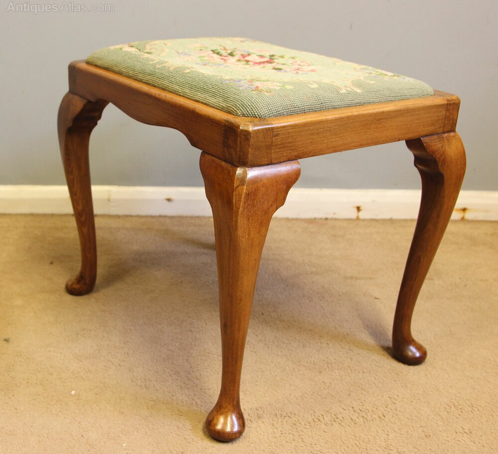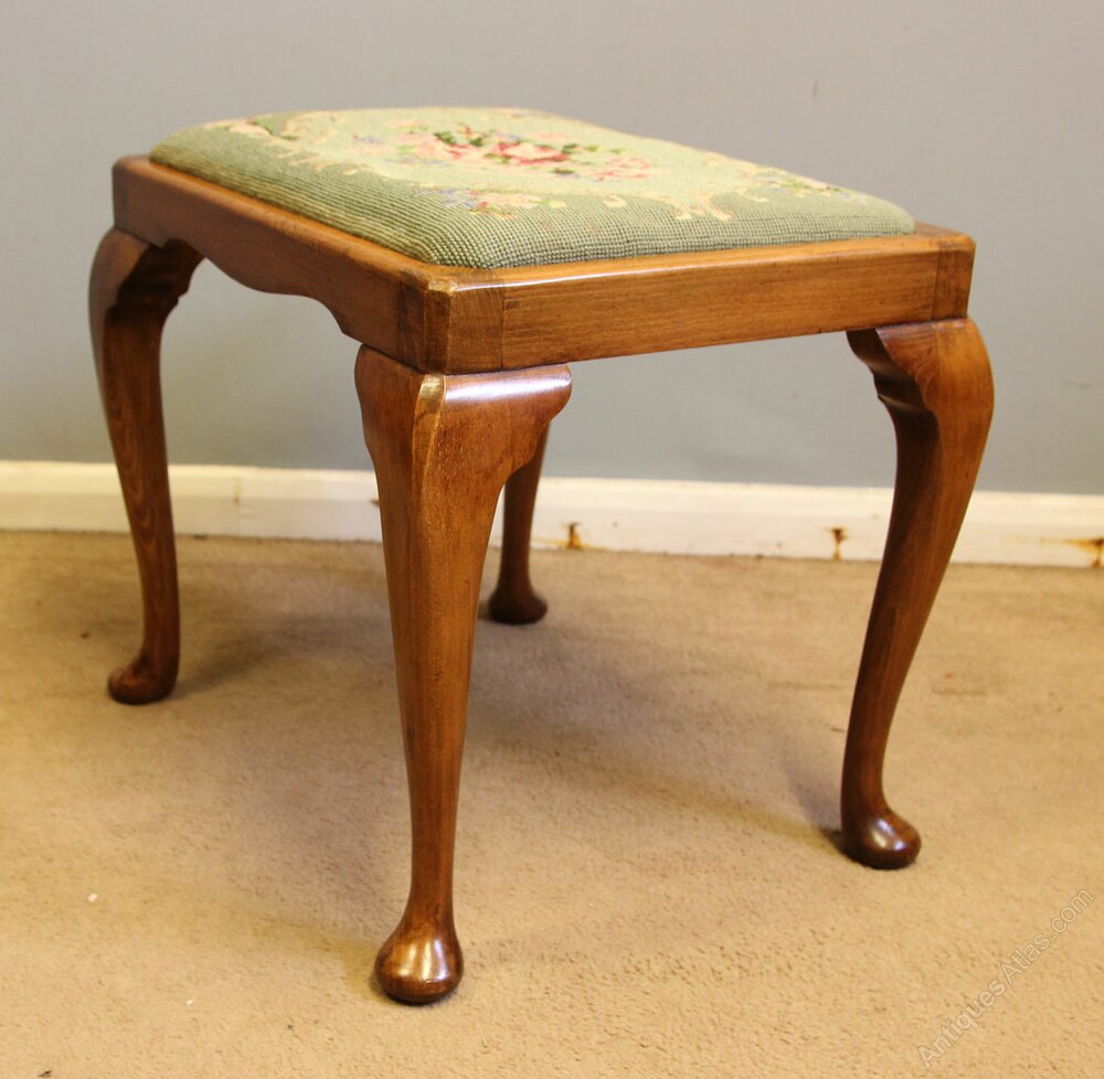 Walnut Cabriole Dressing Stool This lovely queen anne style walnut dressing table stool has a upholstered padded seat supported by queen anne style legs. The seat is a drop in type,-