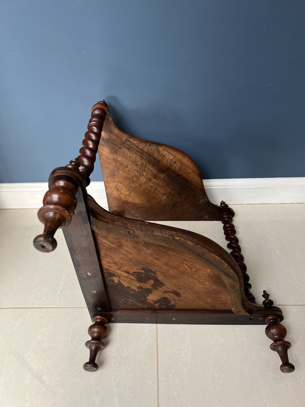 In a very good antique condition - wear is commensurate with age and use as you would expect from a genuine antique from the mid to late 19th century. Surface wear and a few chips to the finials add to the charm of this beautiful old piece. Solid of joint, no wobbles and suitable for use rather than being purely decorative. A really pretty addition to any home showcasing the wood craftsmanship of the Victorian era.