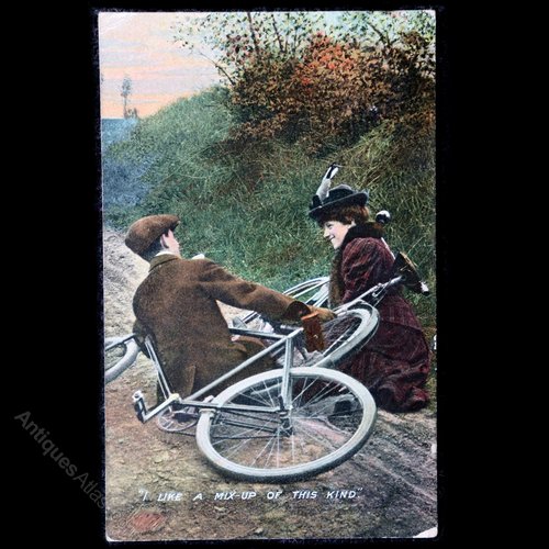 I like a mix-up of this kind - two cyclists who have come to grief and come together.A good greetings card for cyclists.