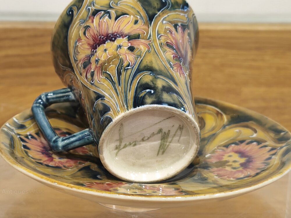 Rare Wm Moorcroft Revived Cornflower Cup & Saucer