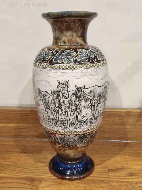 Doulton Lambeth Hannah Barlow Horses & Goats Vase