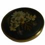 A slender handbag mirror.The lid is decorated with a charming design crafted from dried flowers.