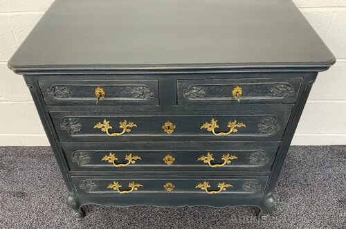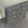 This lovely painted french chest of drawers is offered in very good condition.The chest has been painted in a farrow and ball railings, slightly shabbied and given a clear wax finish.