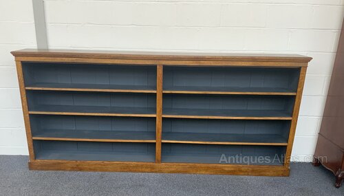 This stunning oversized 9ft wide oak bookcase is offered in very good condition.The oak bookcase has been repolished and the interior has been painted in a farrow and ball railings.