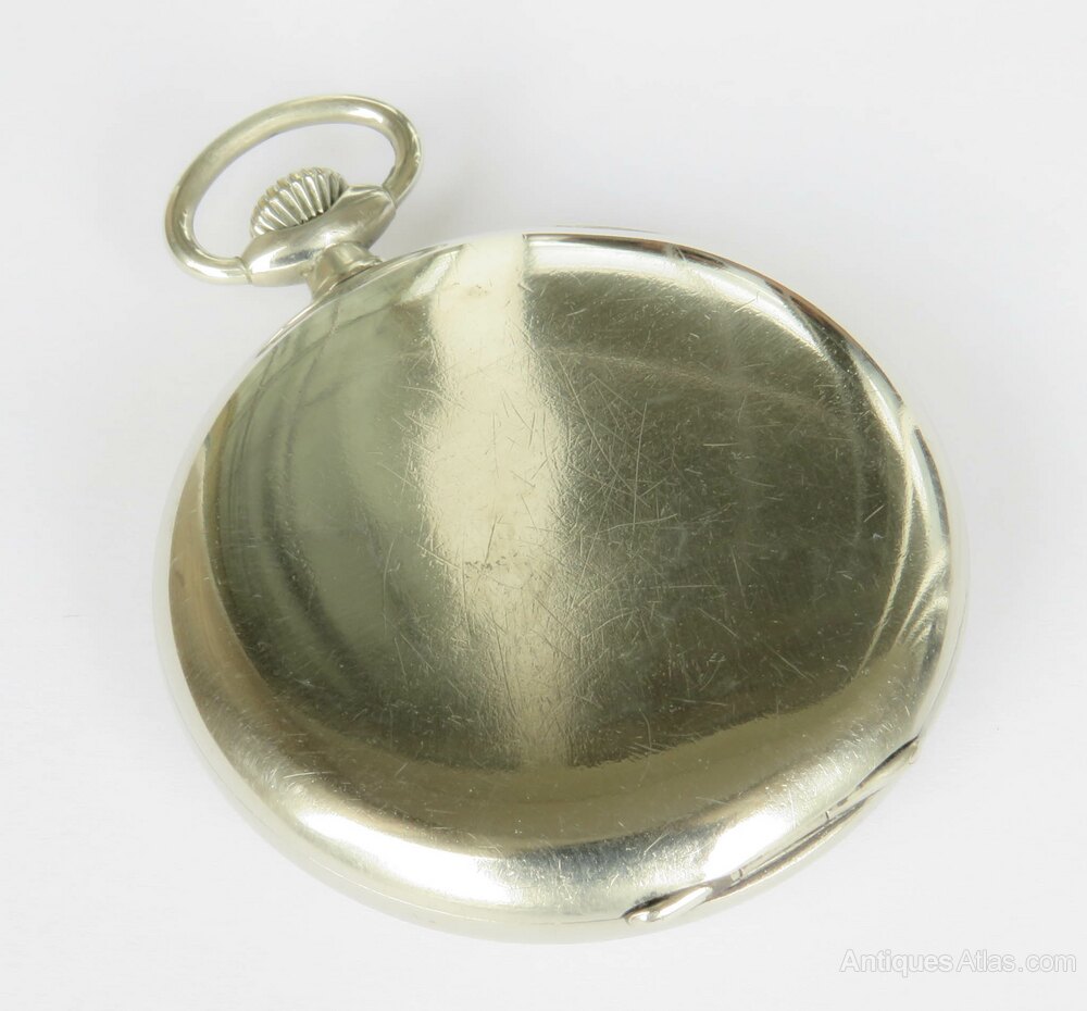 The watch measures 47.5mm diameter excluding the winding stem and the loop. The case is steel. There is some surface marking to the back but the overall condition is good.