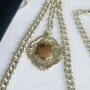 There is also a silver fob with rose gold wash detail. The fob is hallmarked for Birmingham 1934. The fob measures 25mm wide, 25mm high.