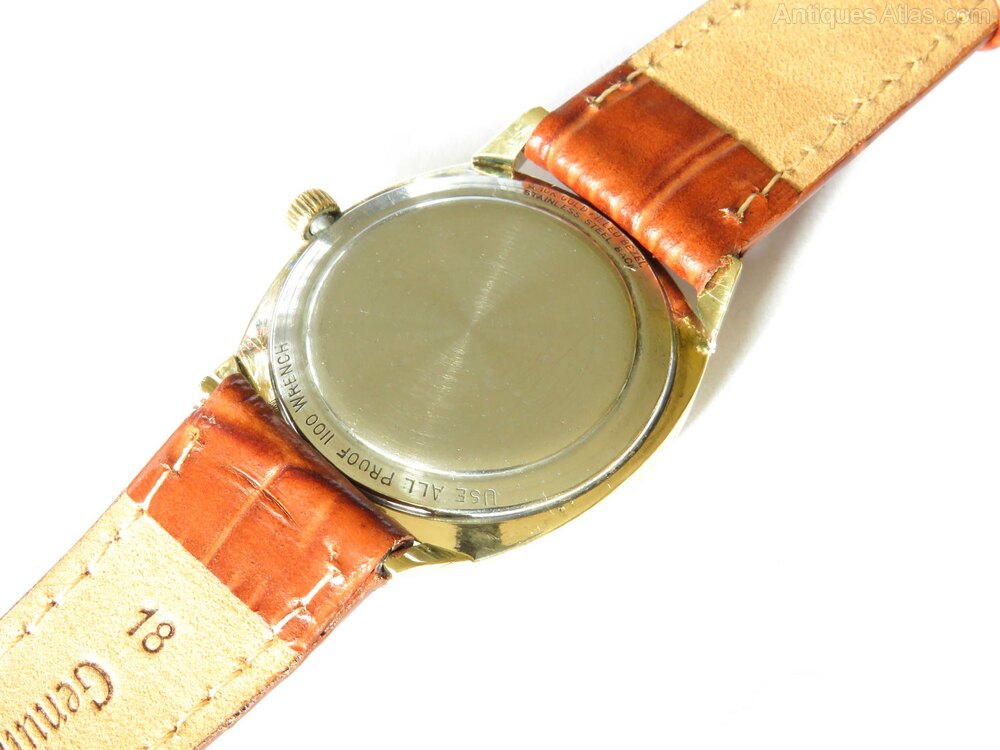 The watch measures 30mm wide excluding the winding crown and 30mm high excluding the lugs. The case is 10k gold filled while the case back is stainless steel. The case is in good condition, just the odd small mark but nothing serious at all.