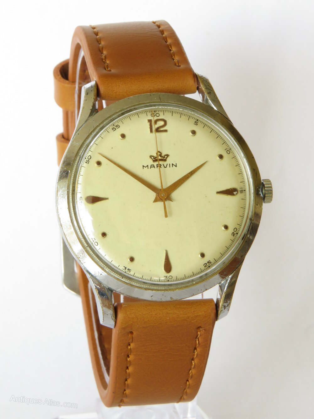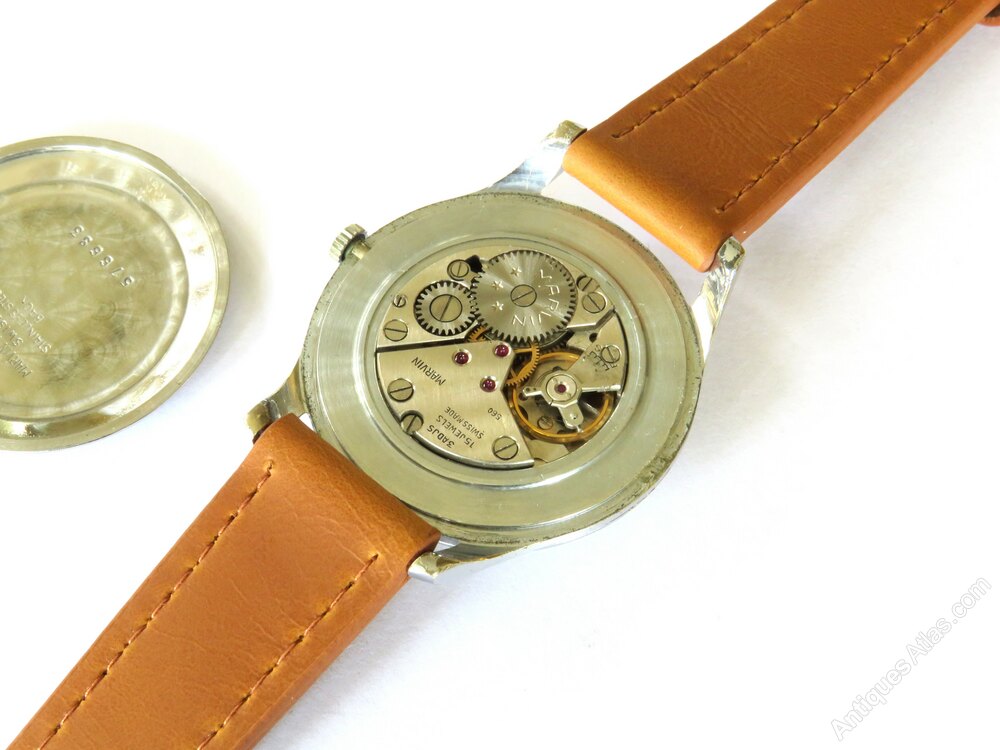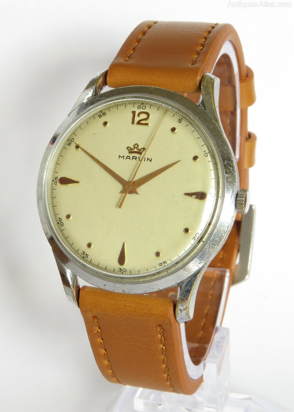 Gents 1950s Marvin wrist watch.The watch has a calibre 560 15-jewel (3 adjustments) hand-winding movement which is working nicely. The movement is signed with the Marvin name.
