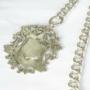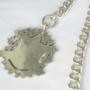 The chain comes with a silver fob, 34mm high, 28mm wide. Free from any inscriptions.